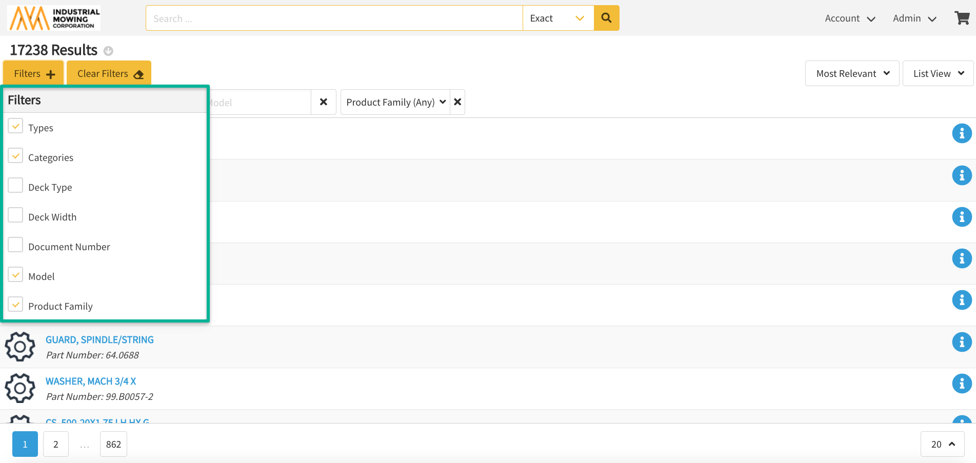 As a best practice, utilize the Filterable Tag property for commonly searched attributes such as: brand, product line, model, or year. For all Filters, define the tag Display Order so the most relevant Filters display at the top of the Filters+ drop-down list and lesser-used Filters are near the bottom.