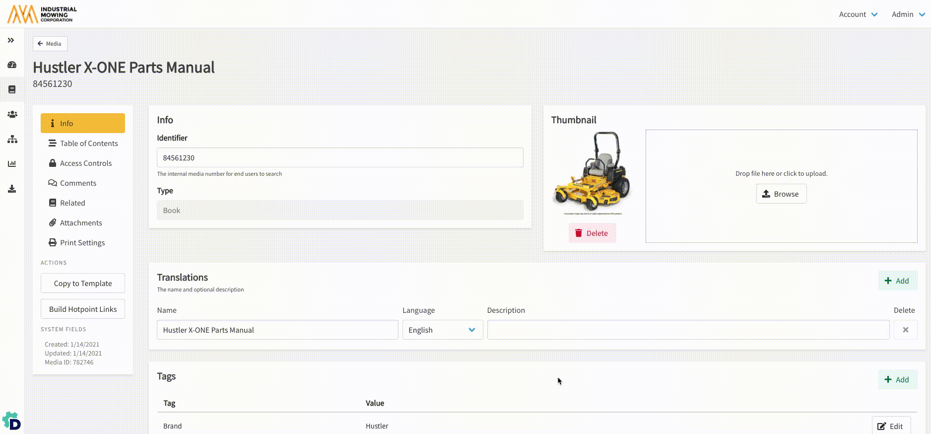 If you need any help formulating a tagging strategy or need support setting up your tags, contact your Documoto Customer Success Manager or Documoto Support at support@documoto.com.