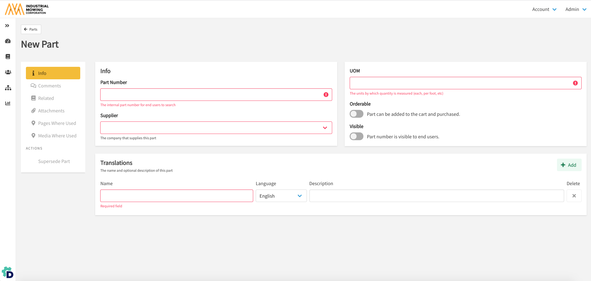 - Populate the required fields (e.g. part number, supplier key, UOM, etc.)