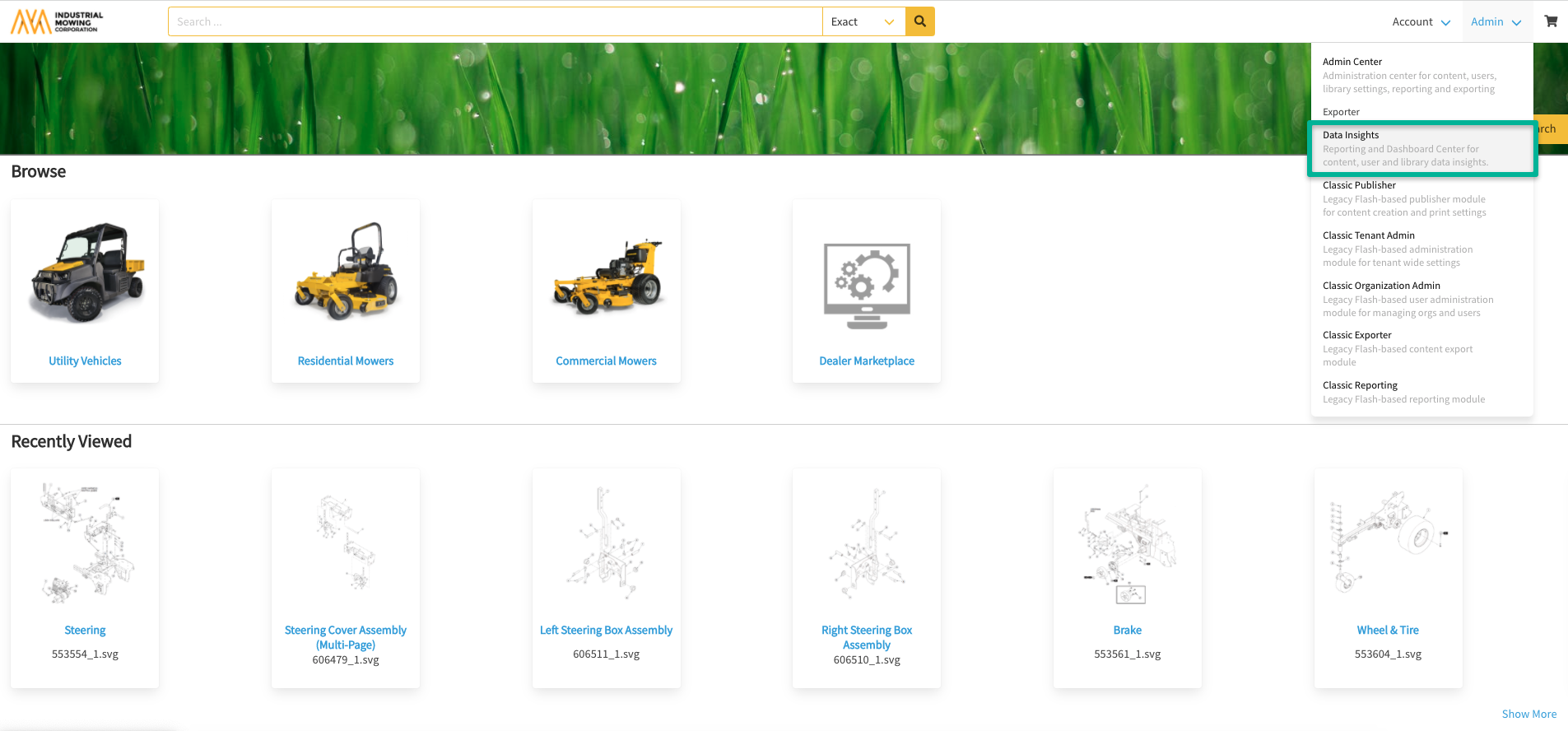 The Data Insights module is the Reporting and Dashboard Center for Documoto that allows users to generate reports for content, user, and Library data insights.