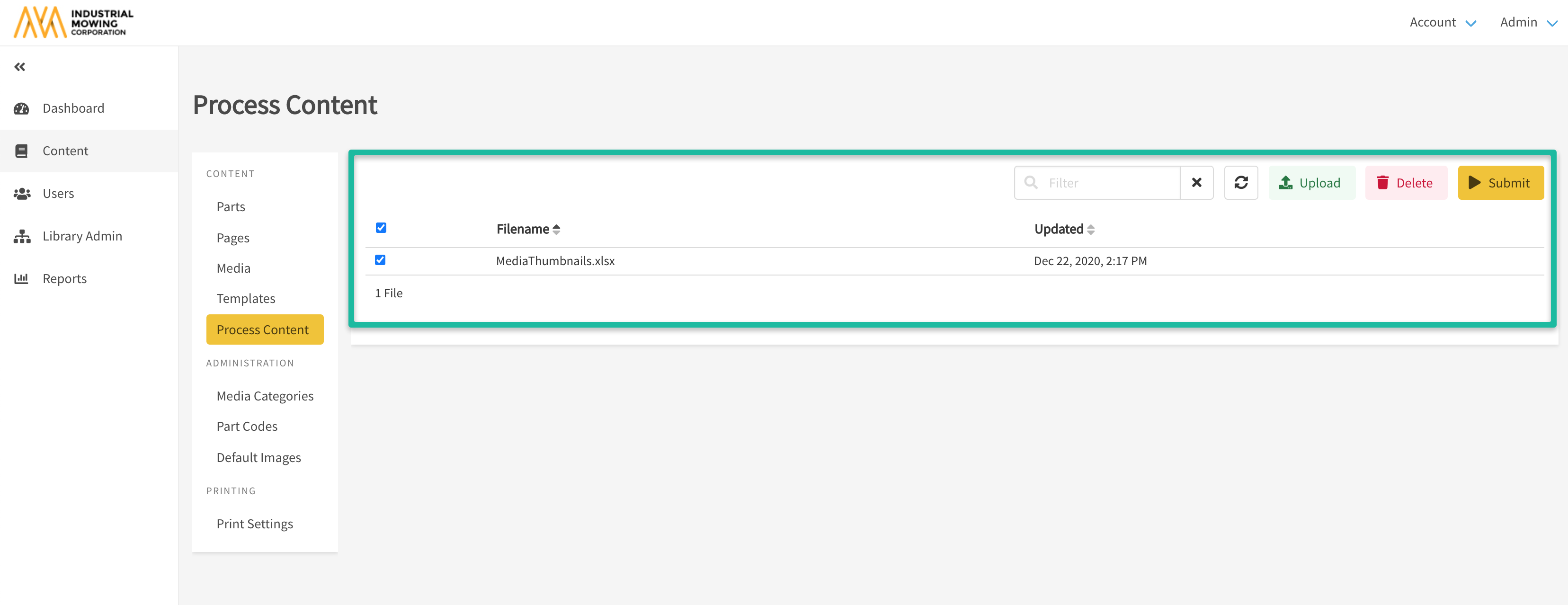 - Click Upload to select the completed media, chapter, page or part thumbnail .xls or .xlsx file.