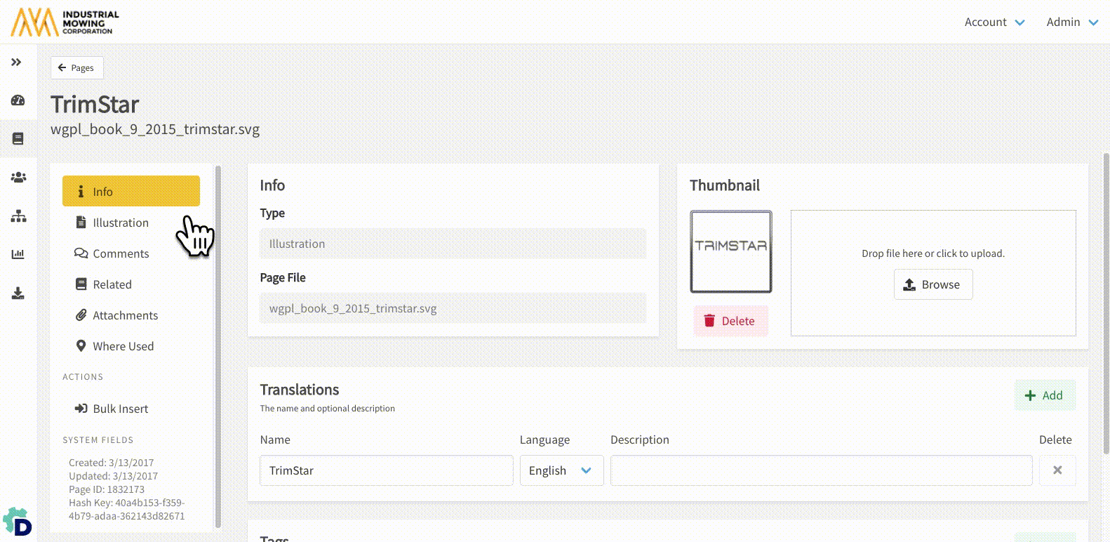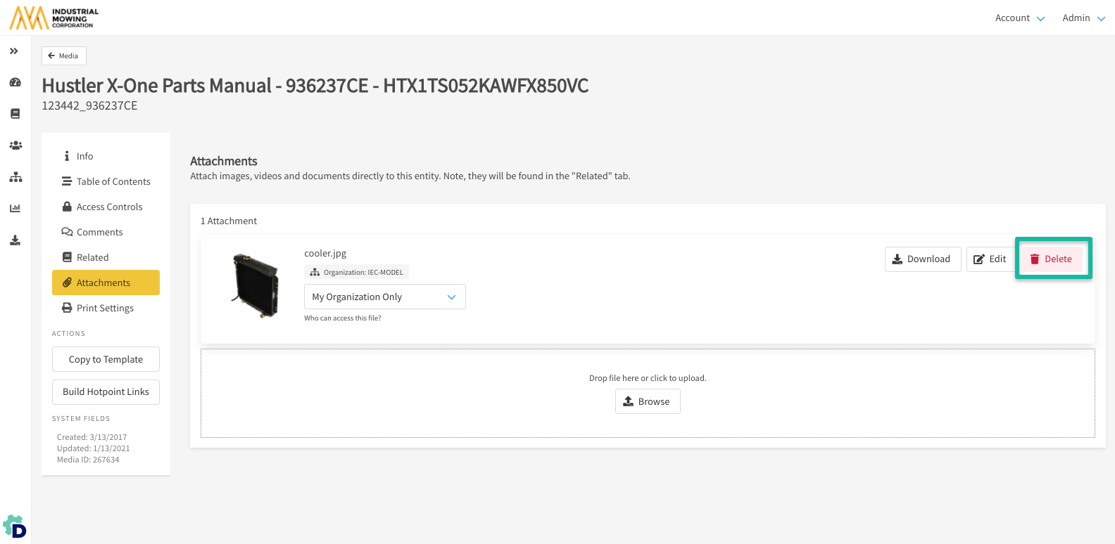 This article describes how to add and manage attachments to pages in Documoto Admin Center. In the Documoto Library, attachments can be found under the Related anchor on the Item Details Page.