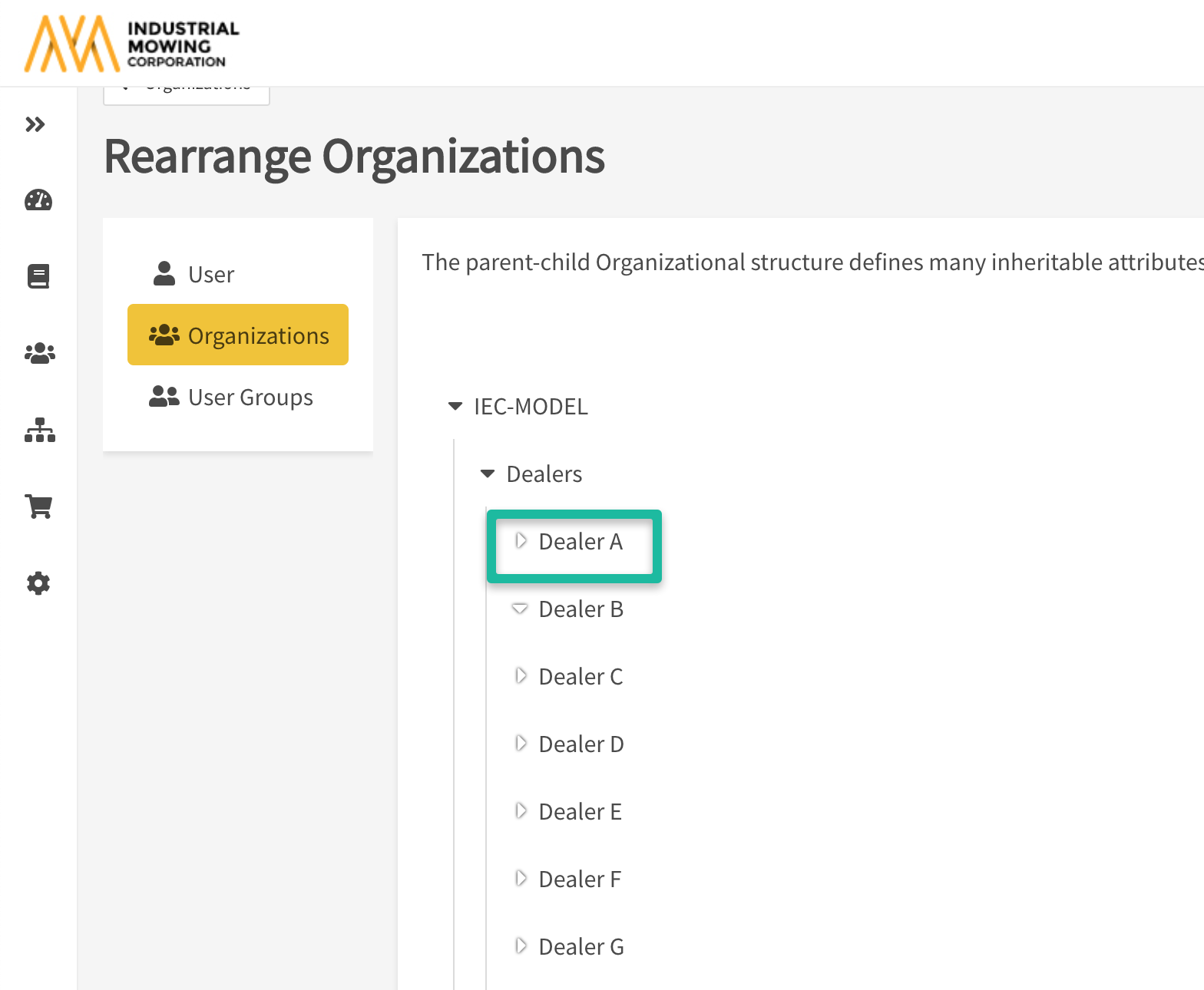 - Select Rearrange and choose the lower-level organization that will have a new "parent"