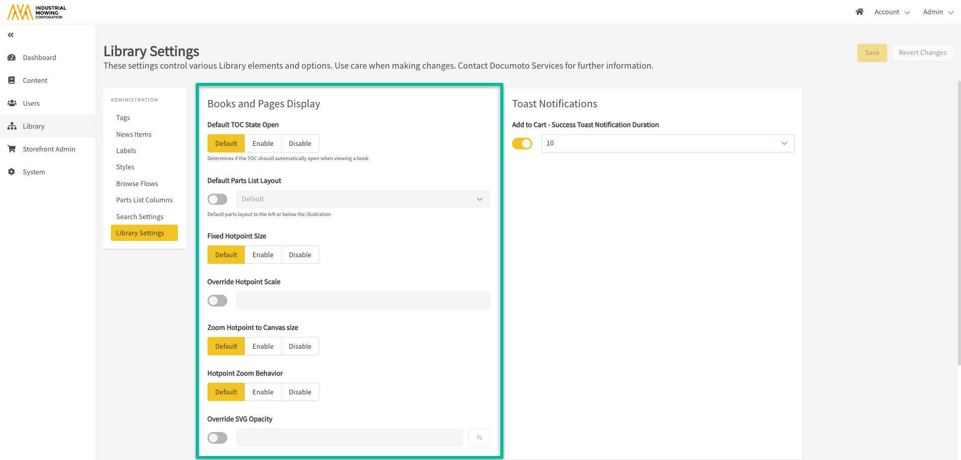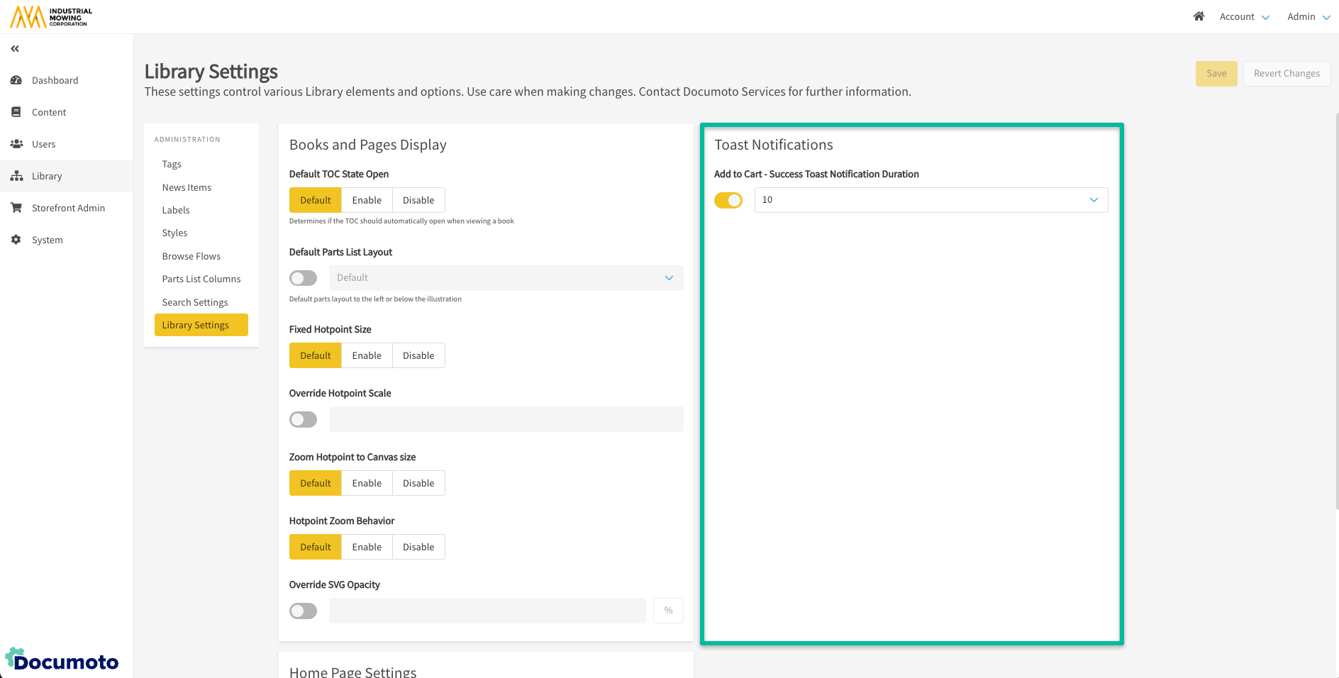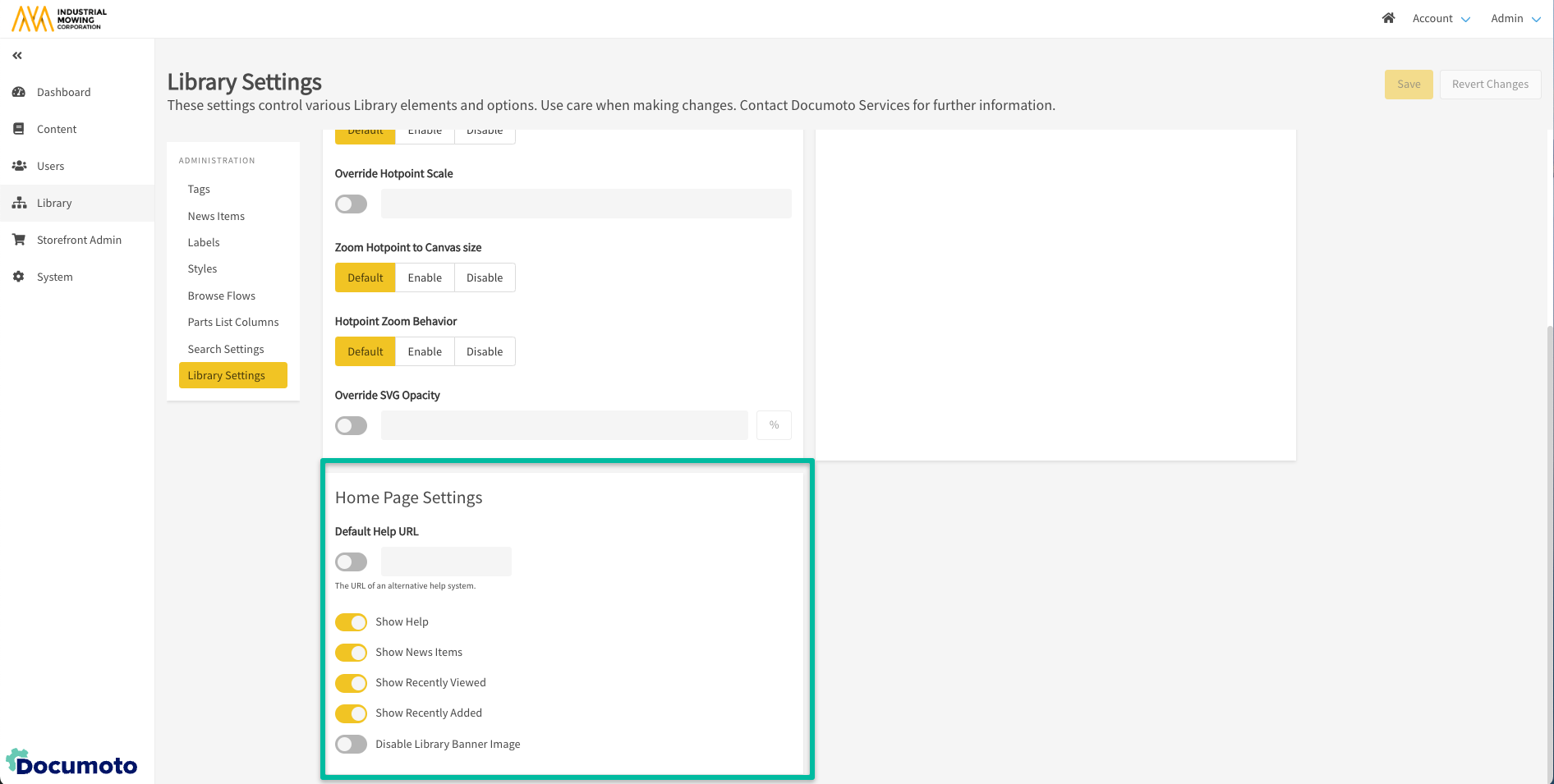 - Within the Documoto Admin Center, go to Library > Library Settings