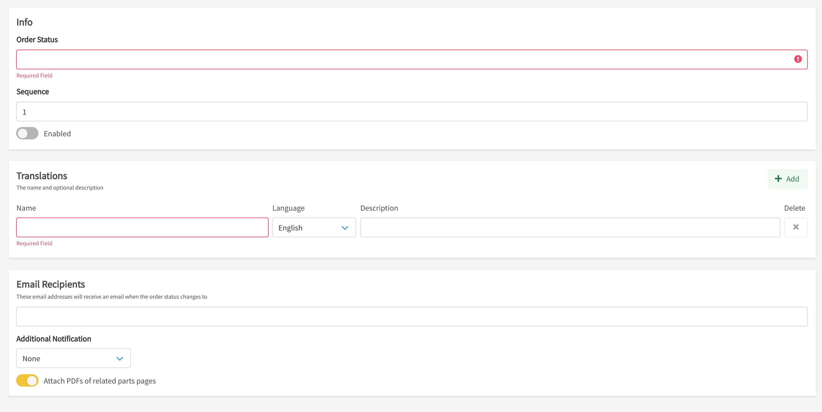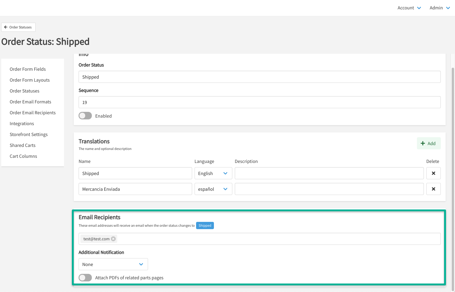 - Configure email recipients that should receive an email notification when an Order Status changes.