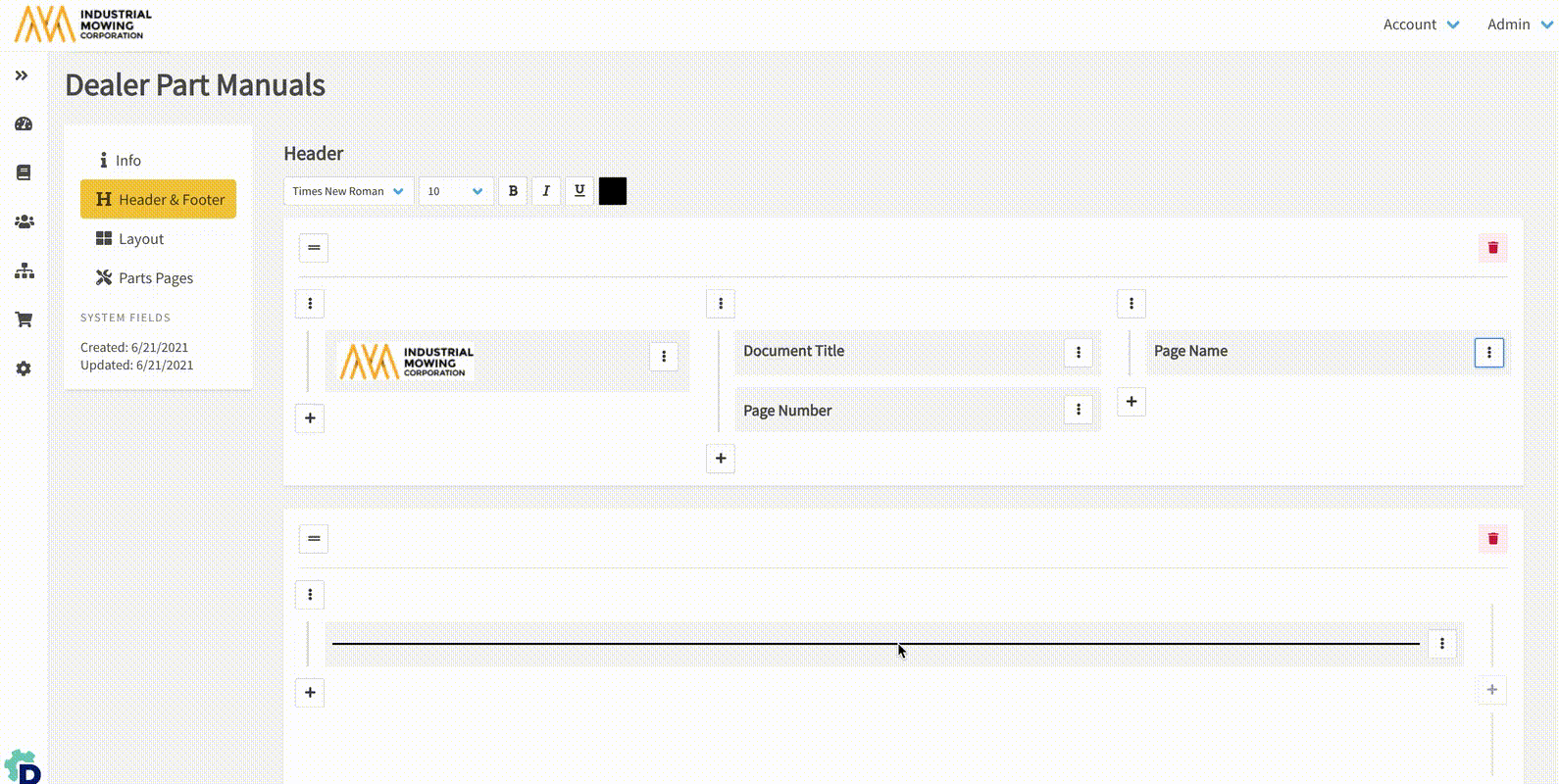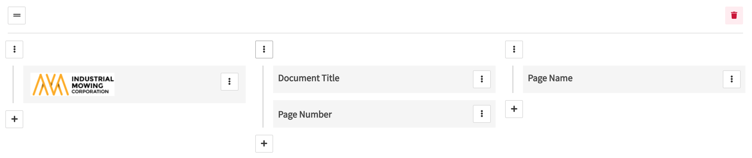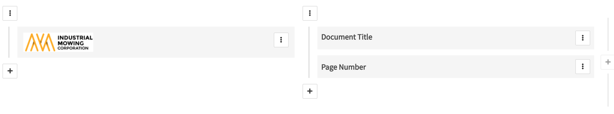 - Use the + to add a new column or field to your header or footer