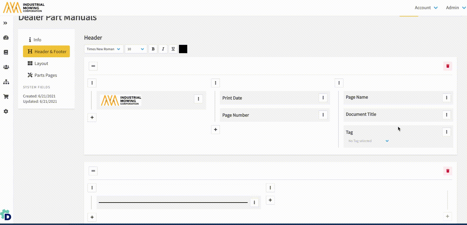 The below instructions and details apply to the configuration of both the Header and Footer: