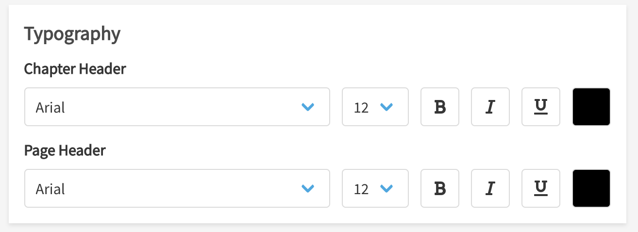 - Set the Typography for both your Chapter and Page Header, if necessary.