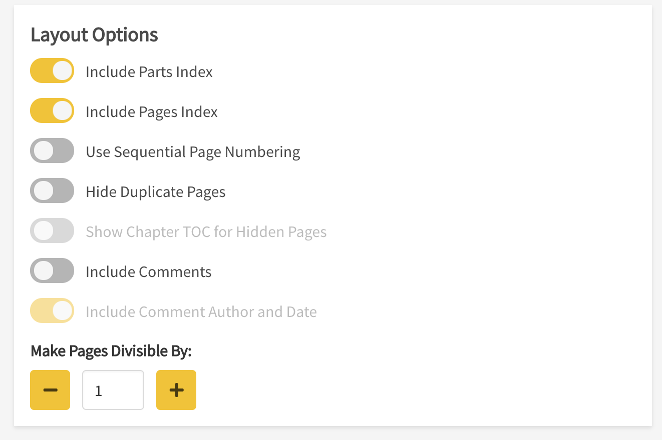- Include Pages Index: Displays a unique list of all page names within your parts manual.