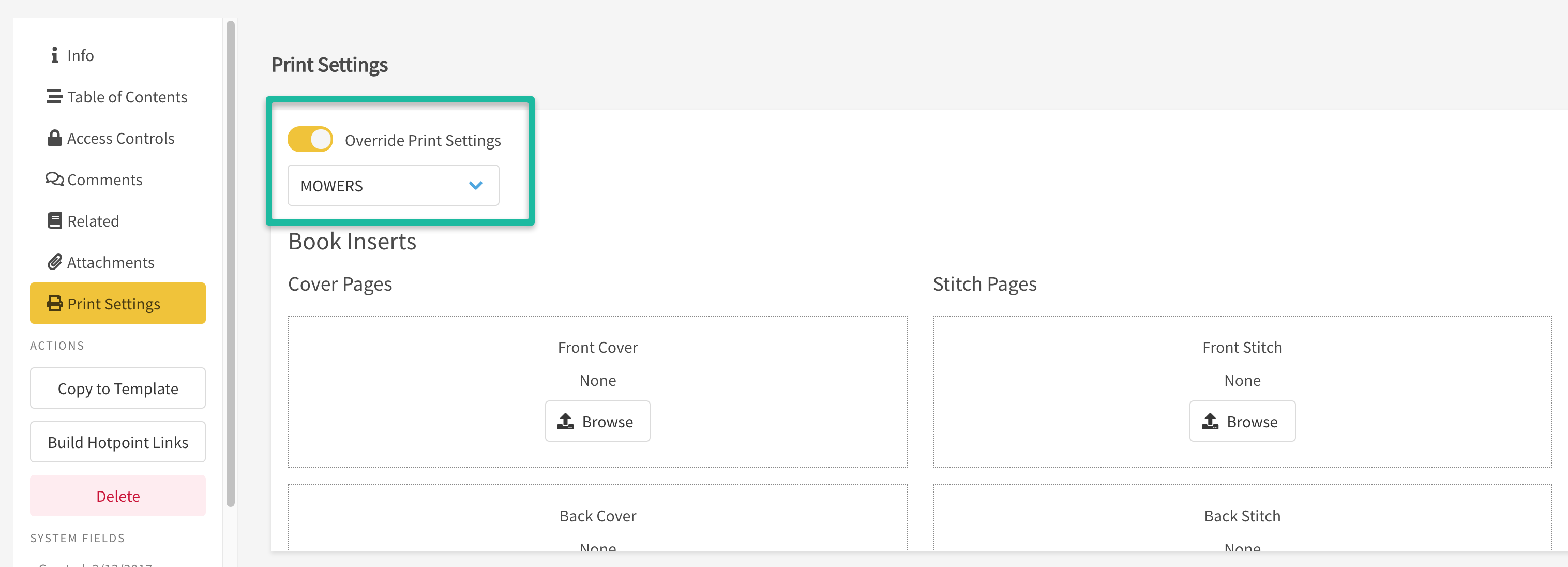 Customers who only need to override Print Settings for particular books, can do so by following the steps below: