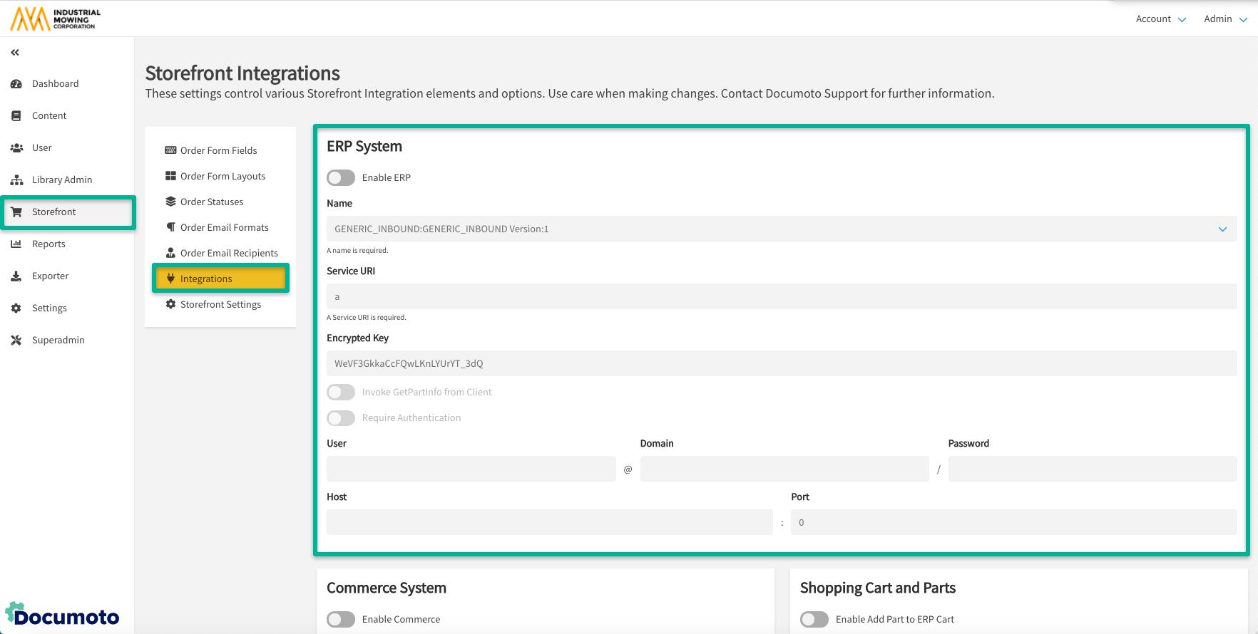 Any changes to ERP System settings could potentially disable your Documoto integration. As a result, we highly recommend reaching out to your Documoto Customer Success Manager or Solutions Engineer prior to making any changes to these settings.