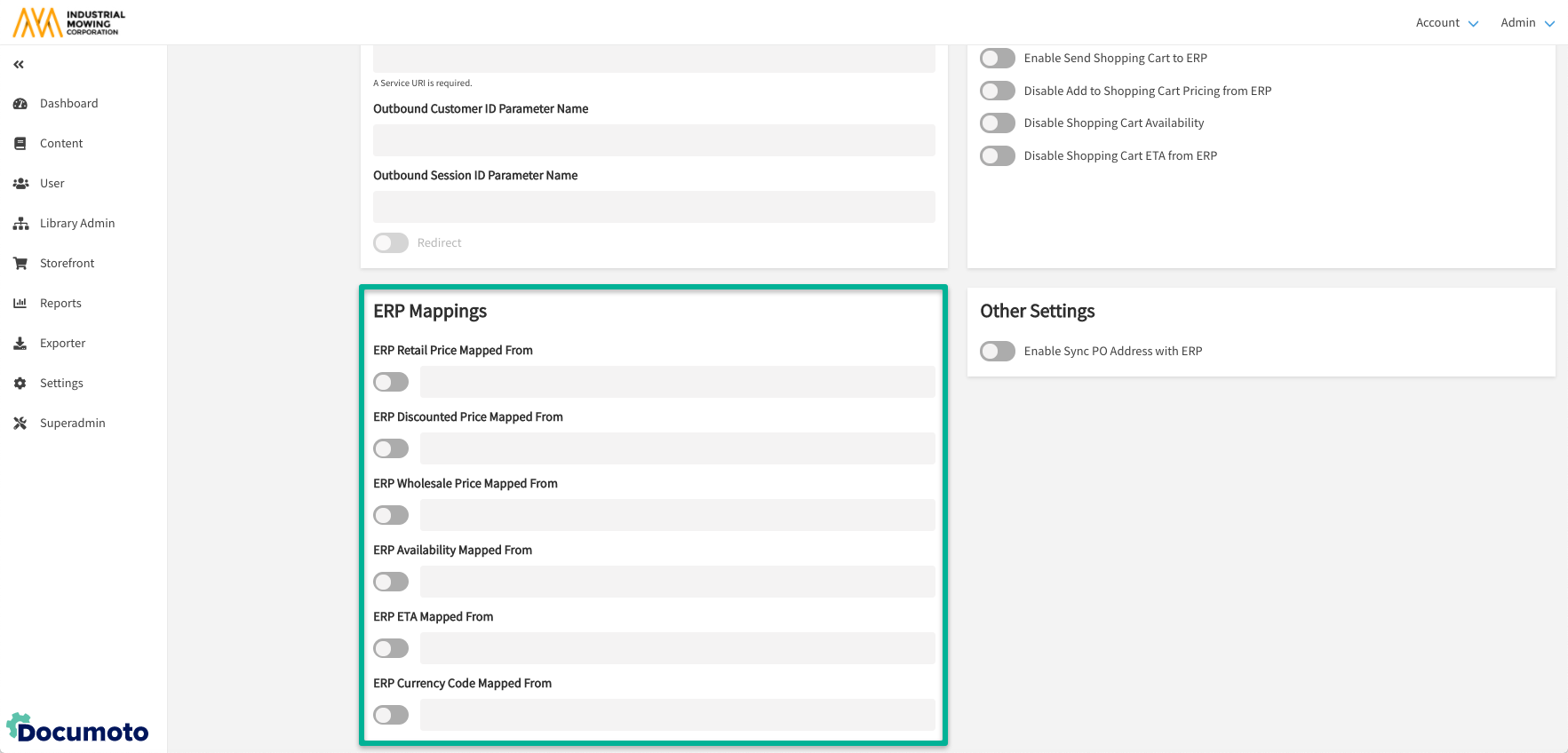 Once again, any changes to ERP Mappings settings could potentially break your Documoto integration. As a result, we highly recommend reaching out to your Documoto Customer Success Manager or Solutions Engineer prior to making any changes to these settings.