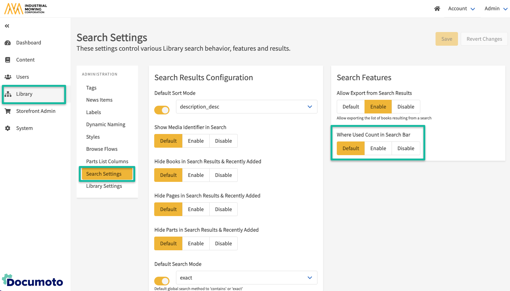 - In the Documoto Admin Center, go to Library > Search Settings