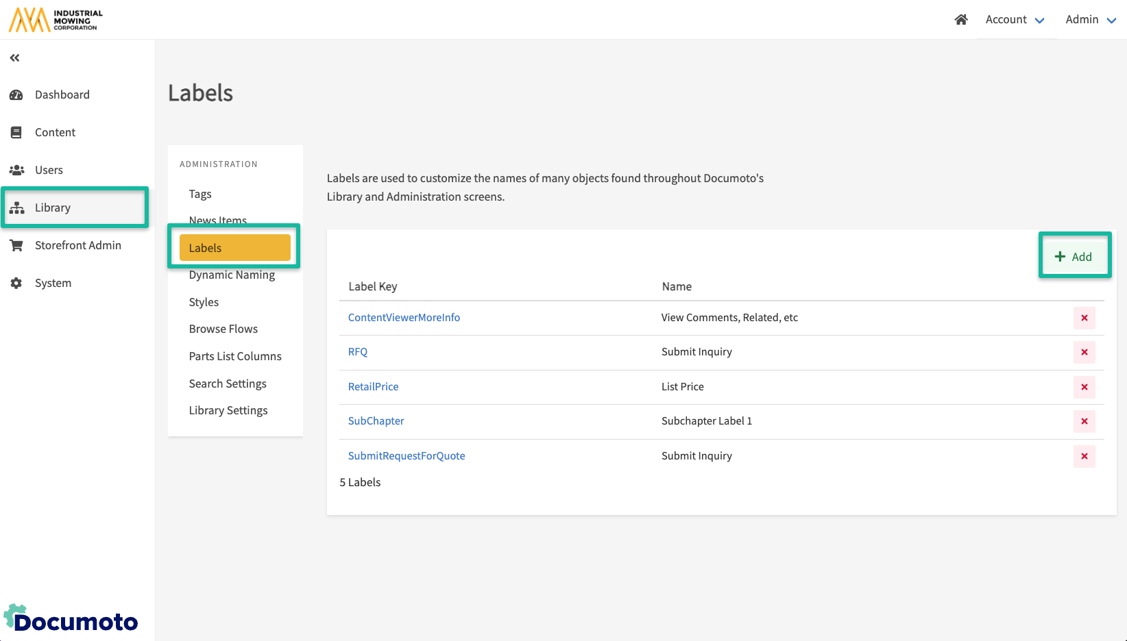 - In the Documoto Admin Center, go to Library > Labels