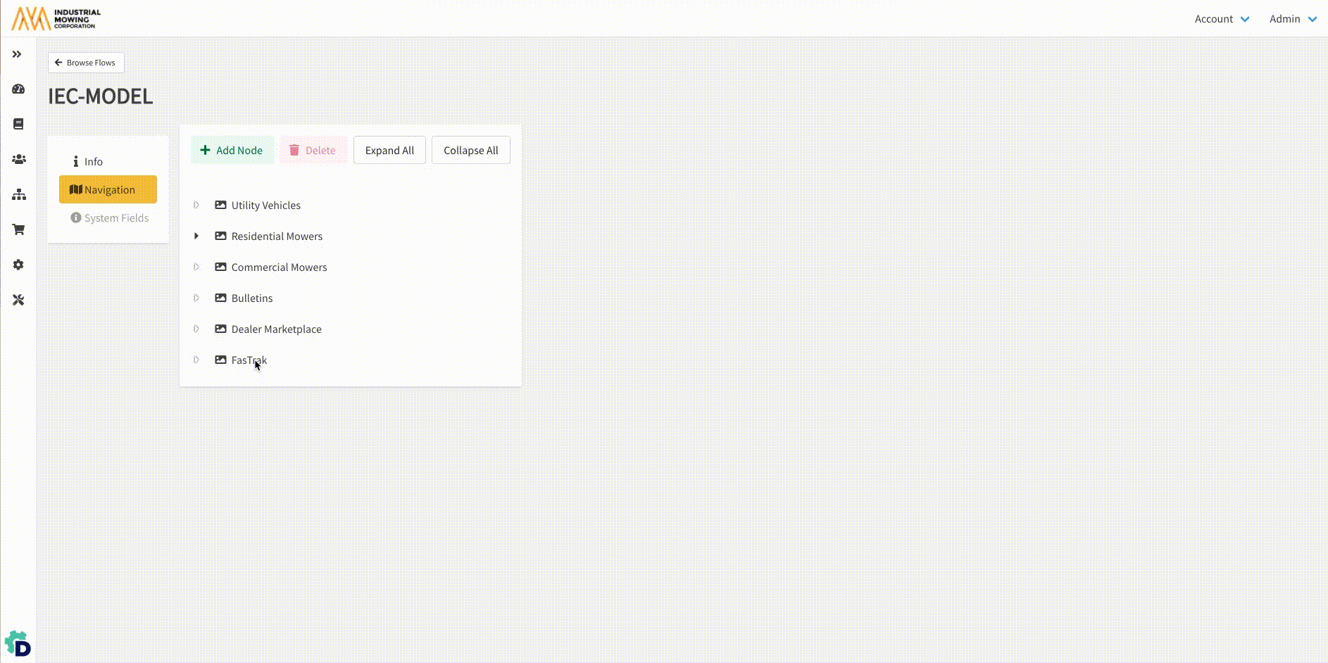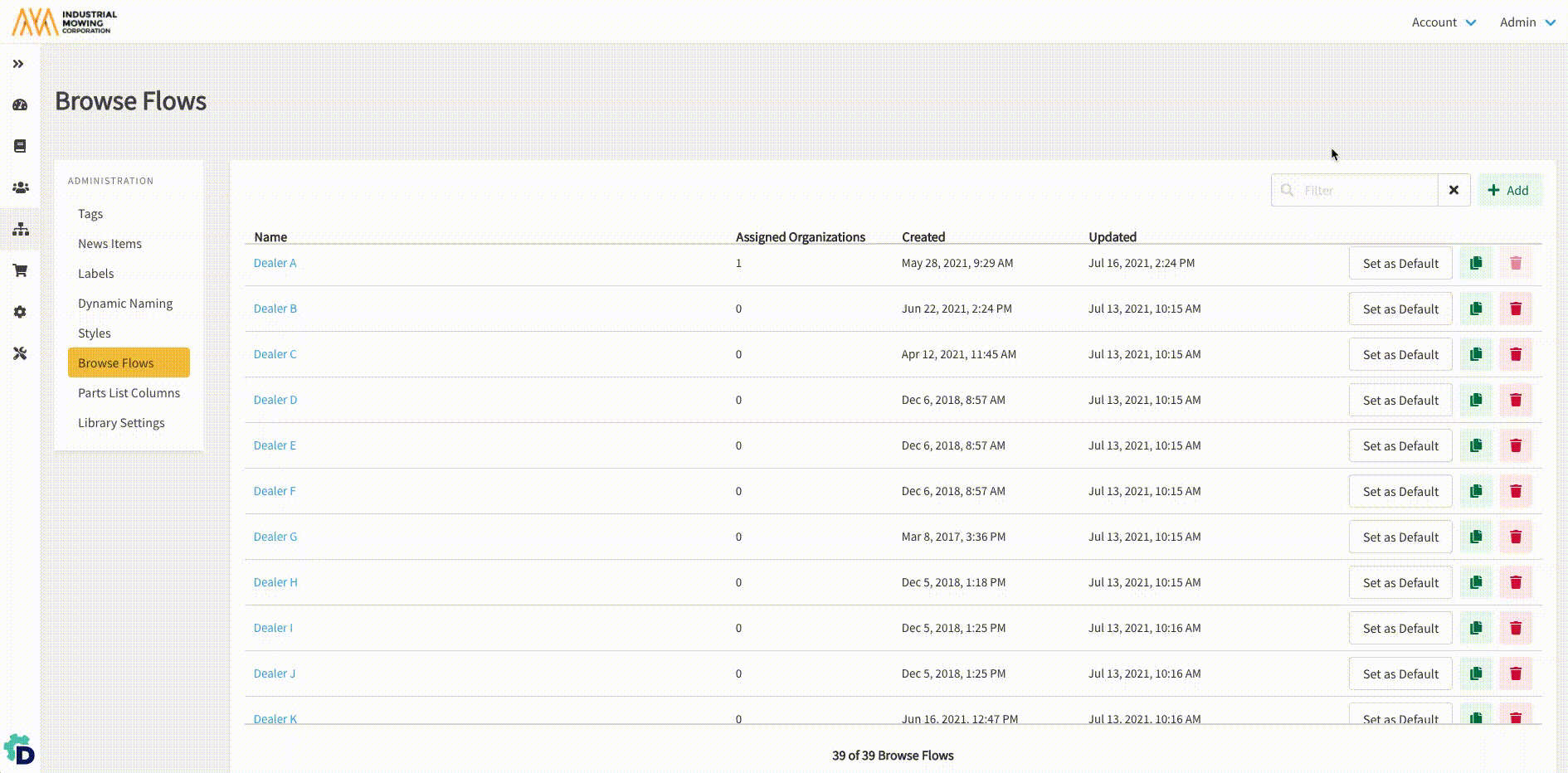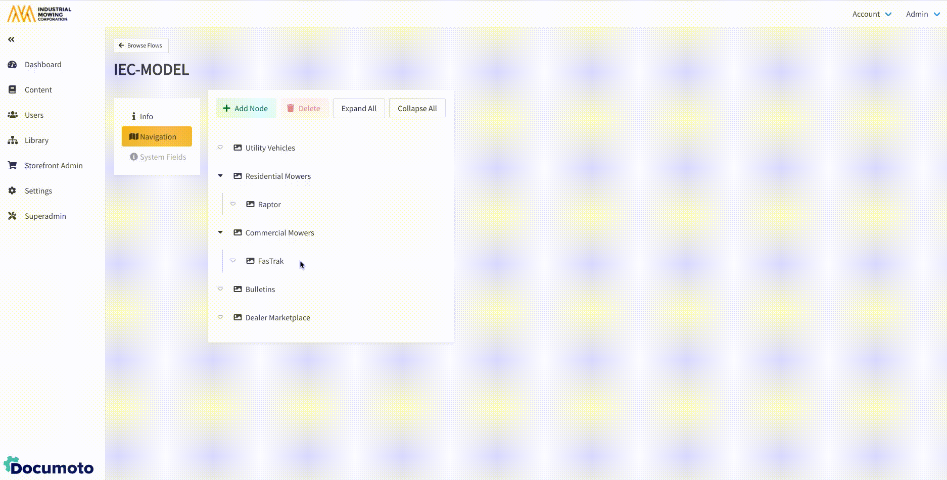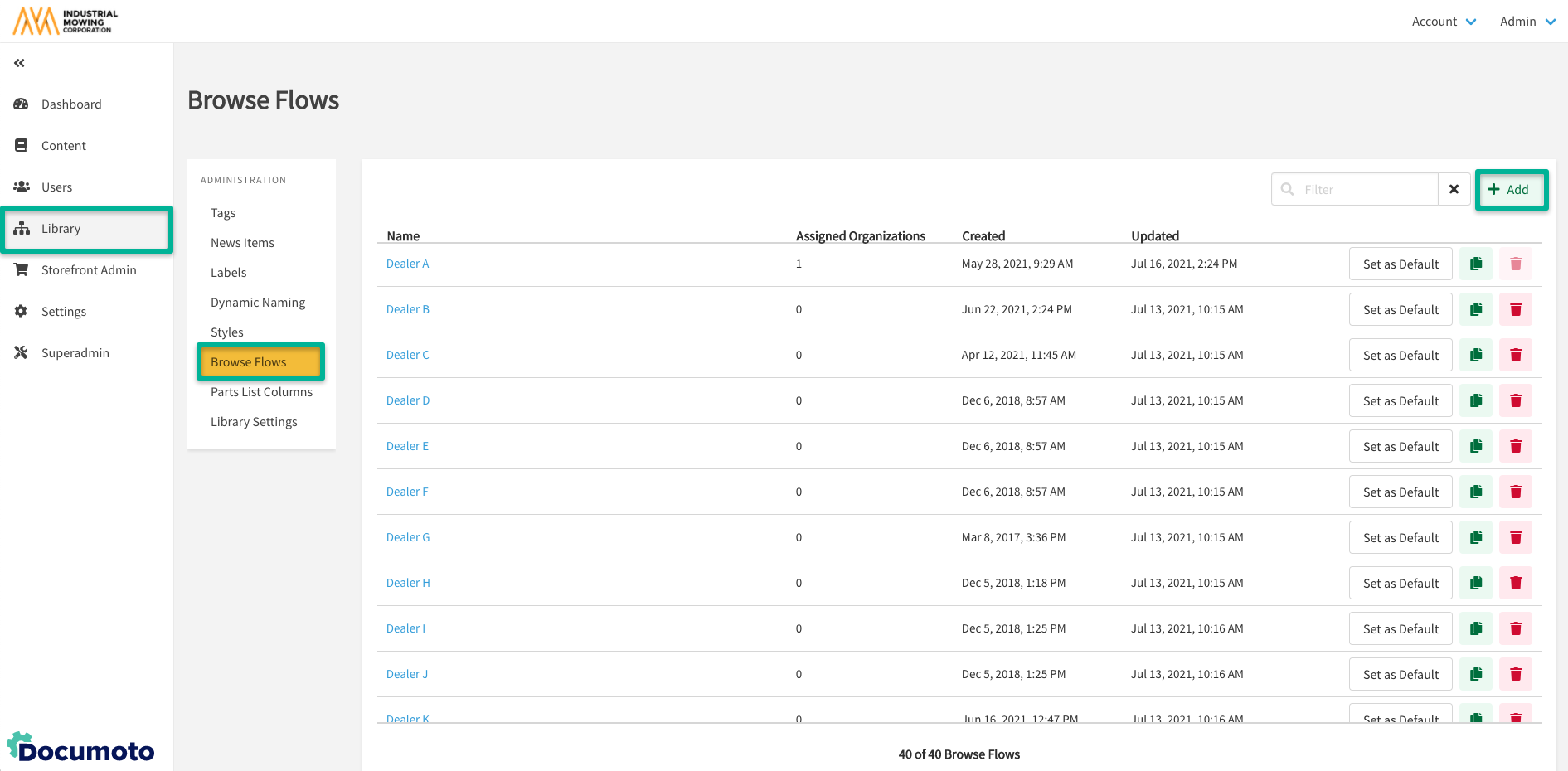 - Within Documoto Admin Center, go to Library Admin > Browse Flows.