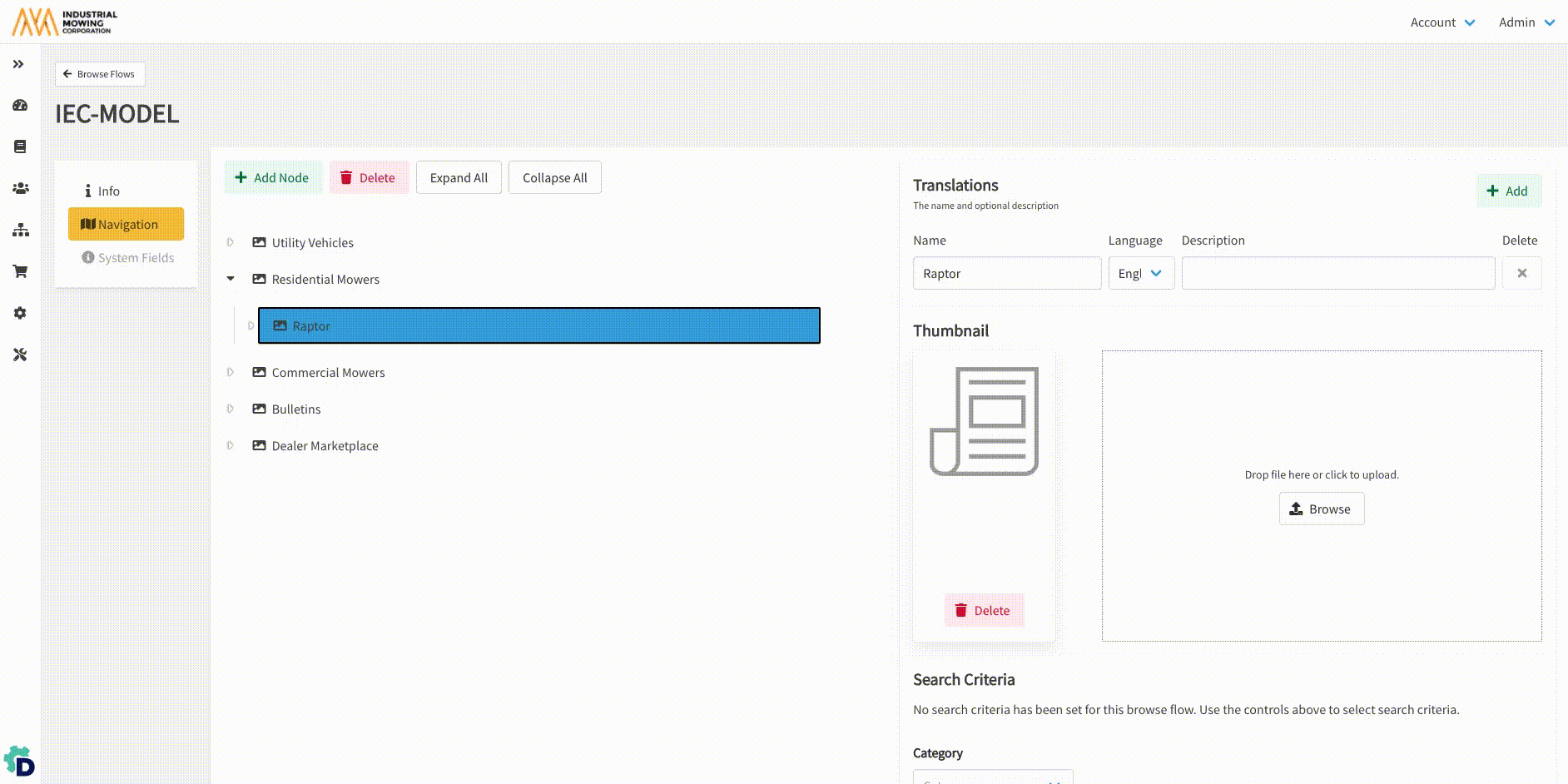 - Assign Search Criteria to each of the lowest-level nodes in the Browse Flow structure. Click Save after defining criteria for each node.