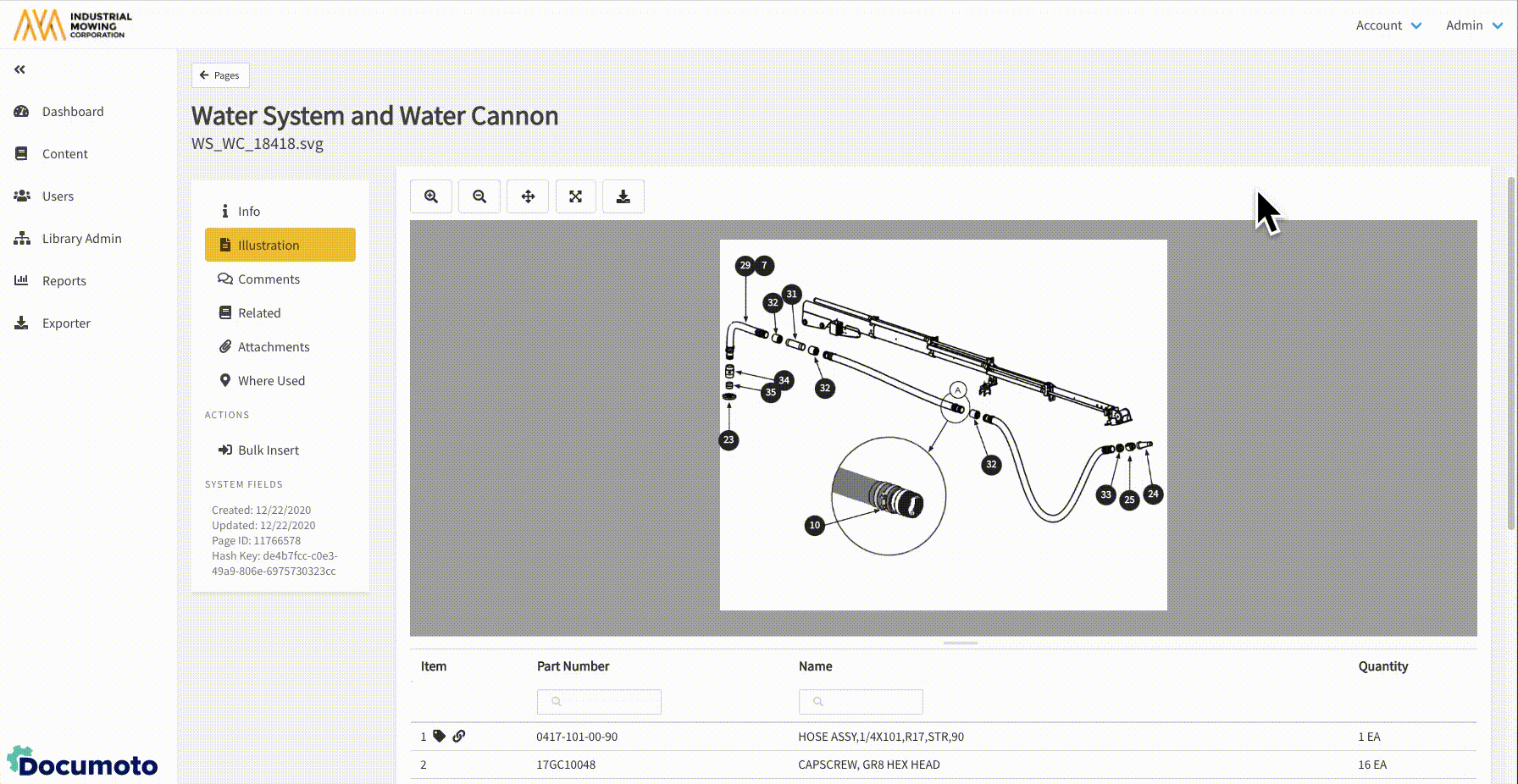 - Within Documoto, go to Admin Center > Content > Pages.
