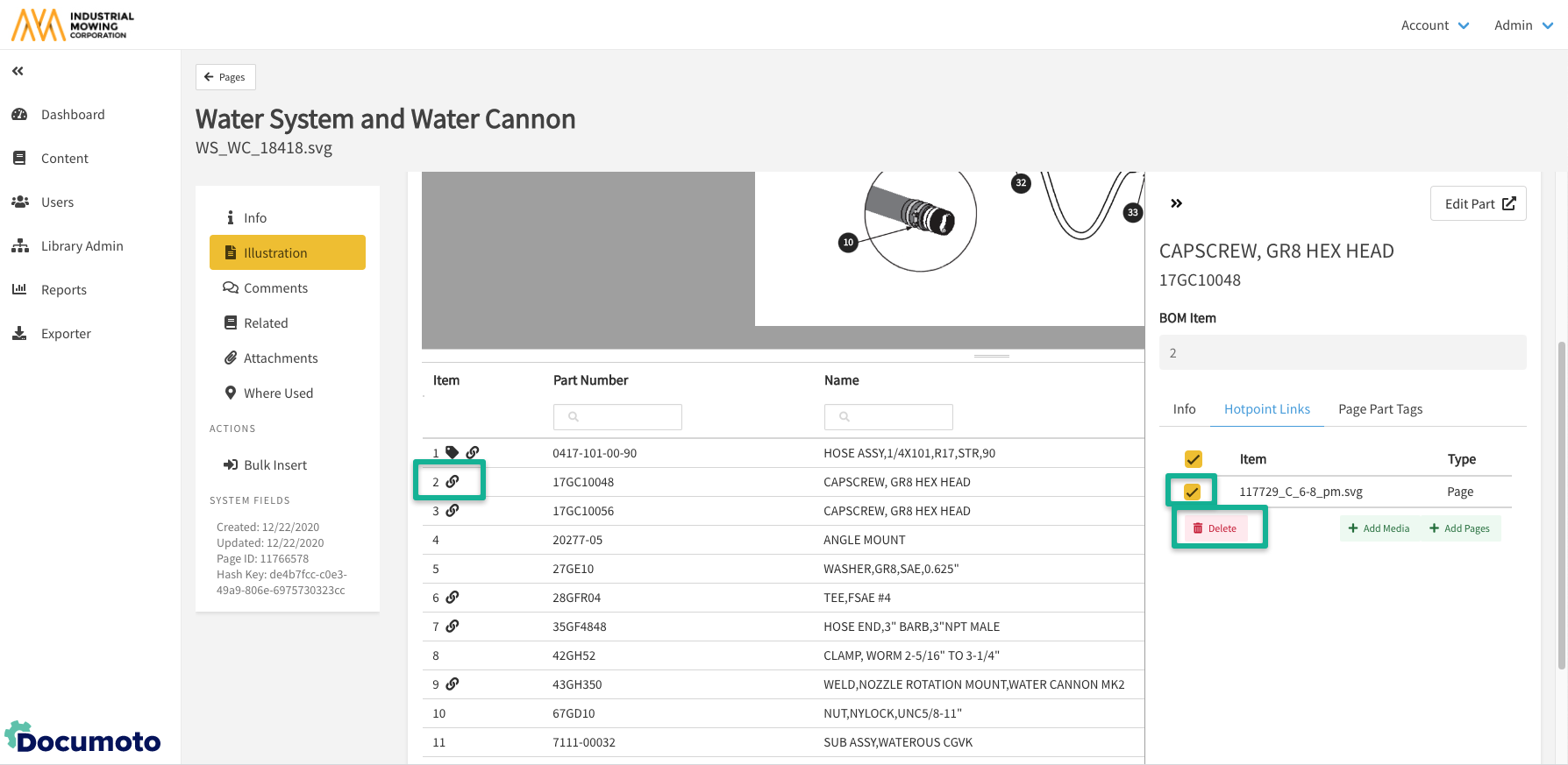 Hotpoint Links allow publishers to create a link from a hotpoint (denoted by a square shape) to a page, chapter or media within Documoto. This article describes the steps to create a hotpoint link, as well as manage existing hotpoint links.