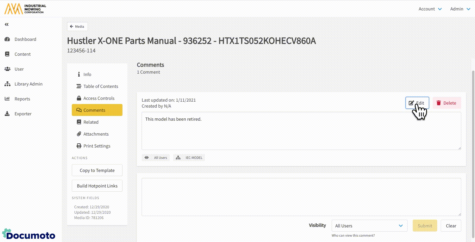 This article describes how Documoto users can create and manage comments on media including books, documents, images, websites, and videos.