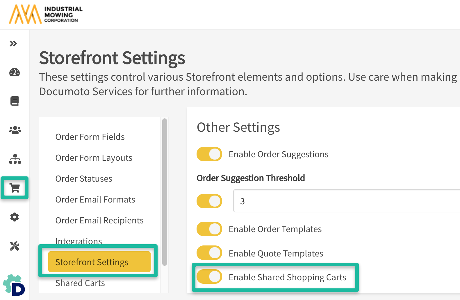 Please be aware that Shared Cart Users will be able to edit and distribute all shared carts within your tenant to any organization in your Documoto instance.