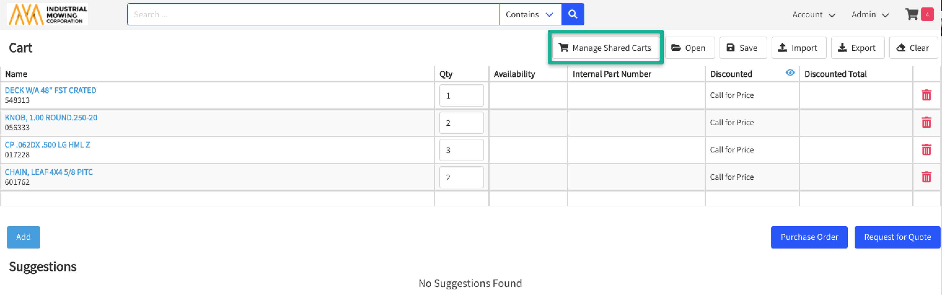 - Select + Add Parts to add parts to the shared cart.