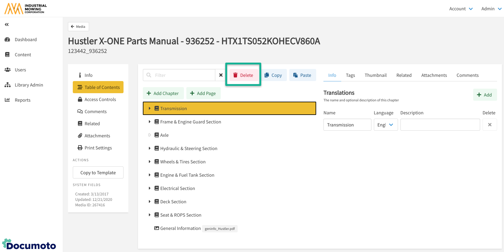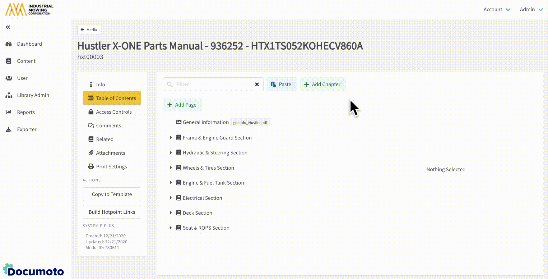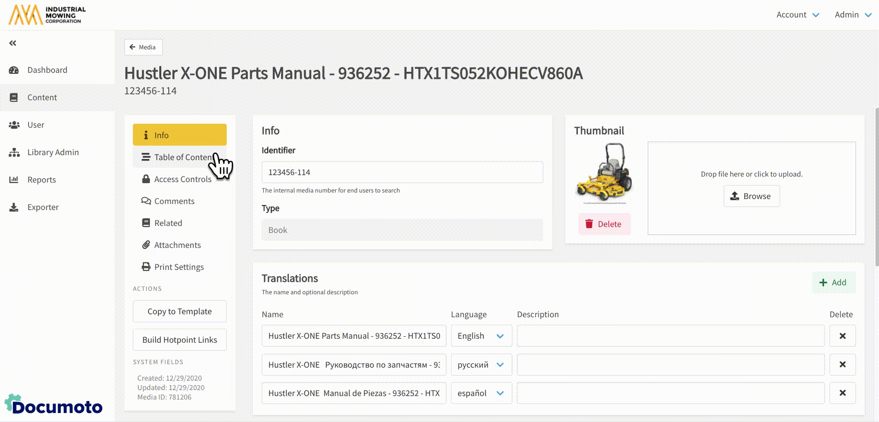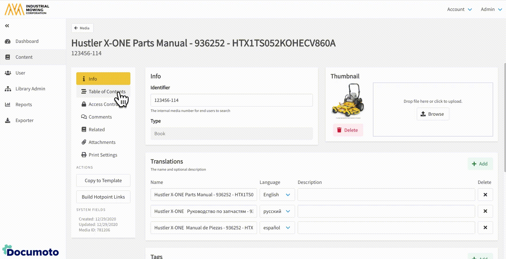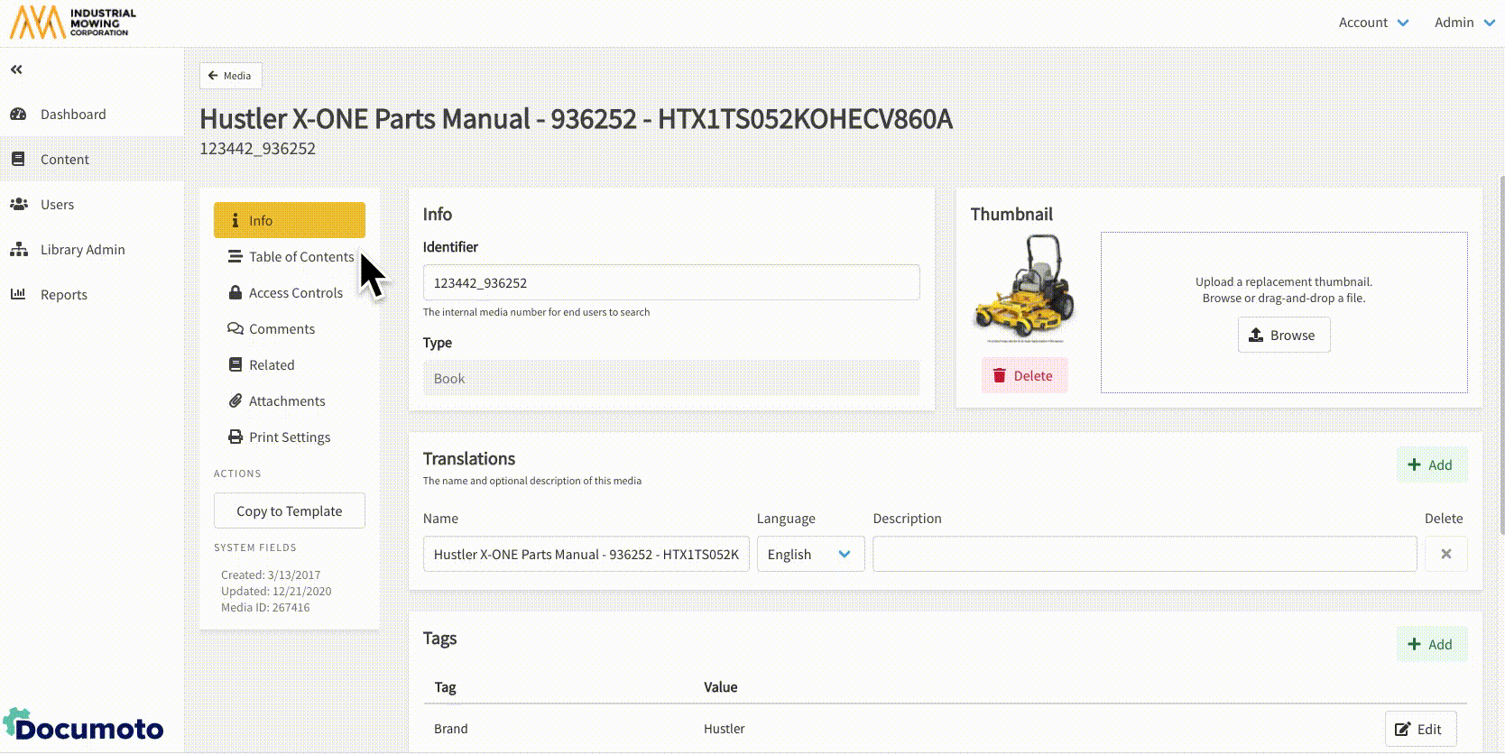 - Within Documoto, go to Admin Center > Content > Media.