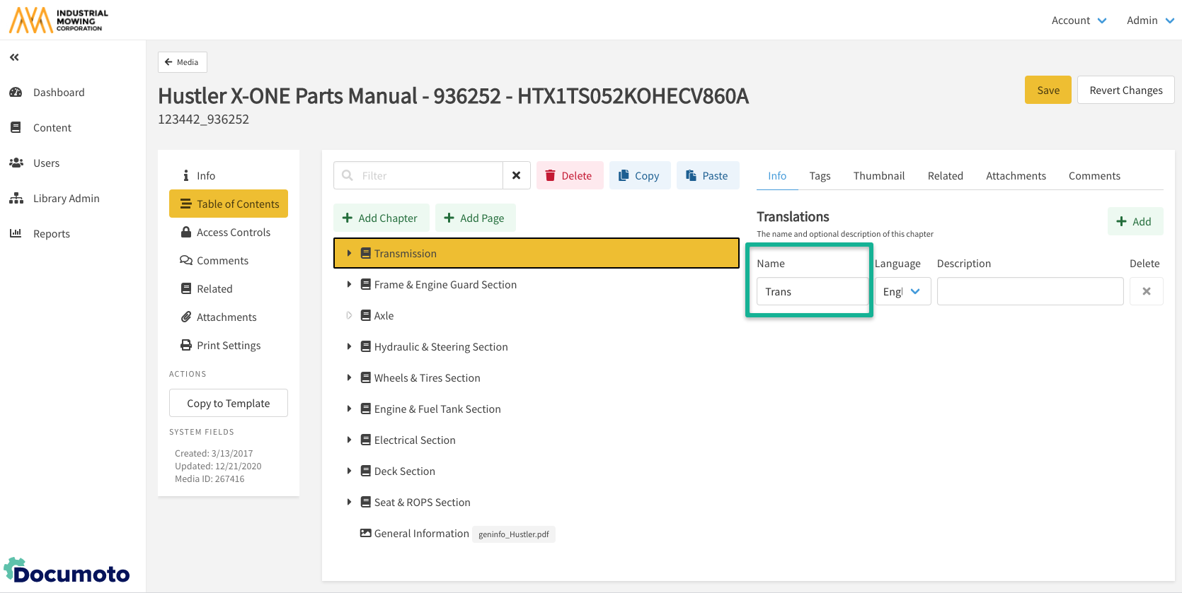 - Edit the Name of the chapter in the Translations section.