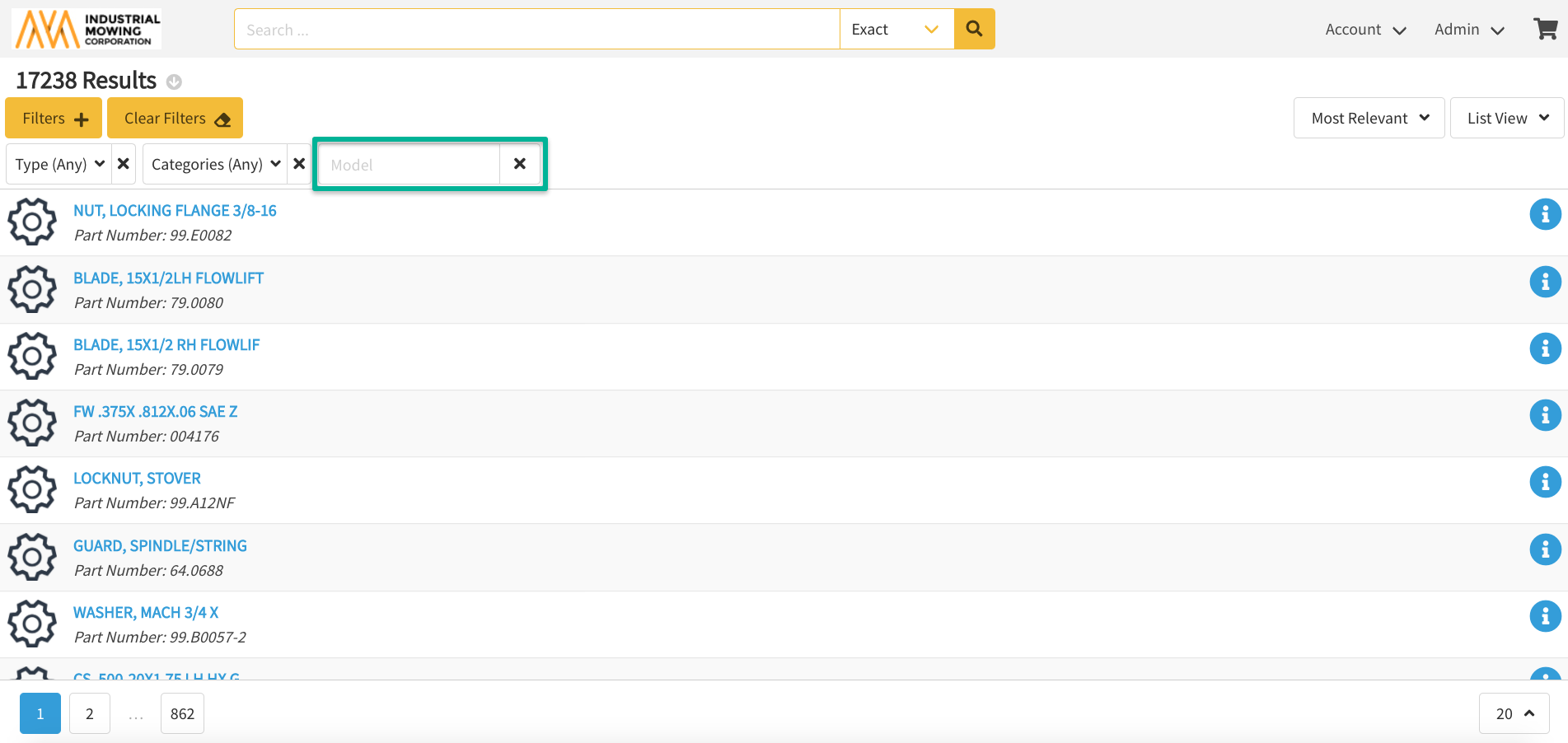 - Type: allows users to refine search results by Documoto entity type (part, page, chapter, book, document, video, etc.)