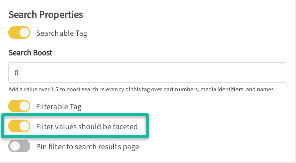 Additionally, administrators should ensure the corresponding tag values are unique before defining a filter as facetable for selection on the filter.