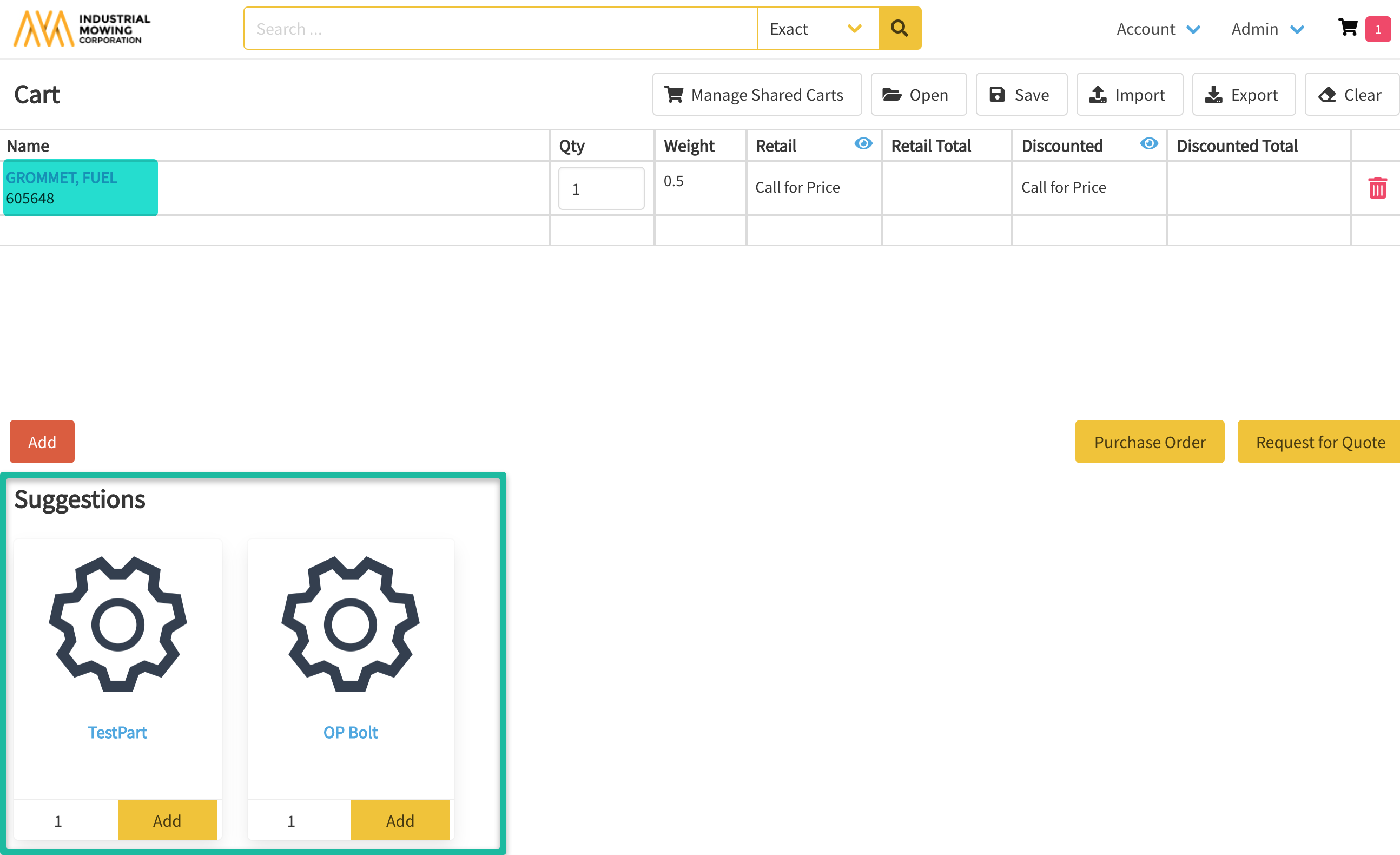 - Click +Add and choose the part(s) you would like displayed as suggestions.