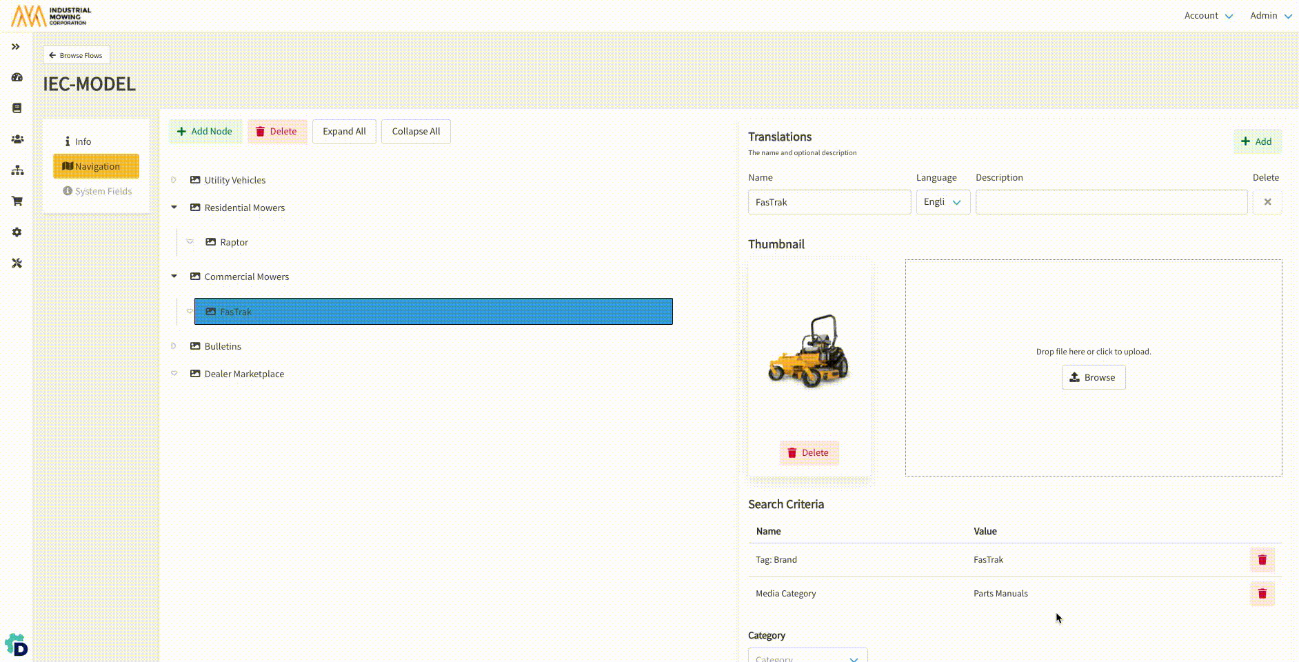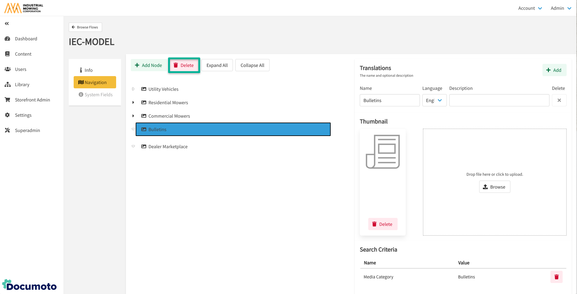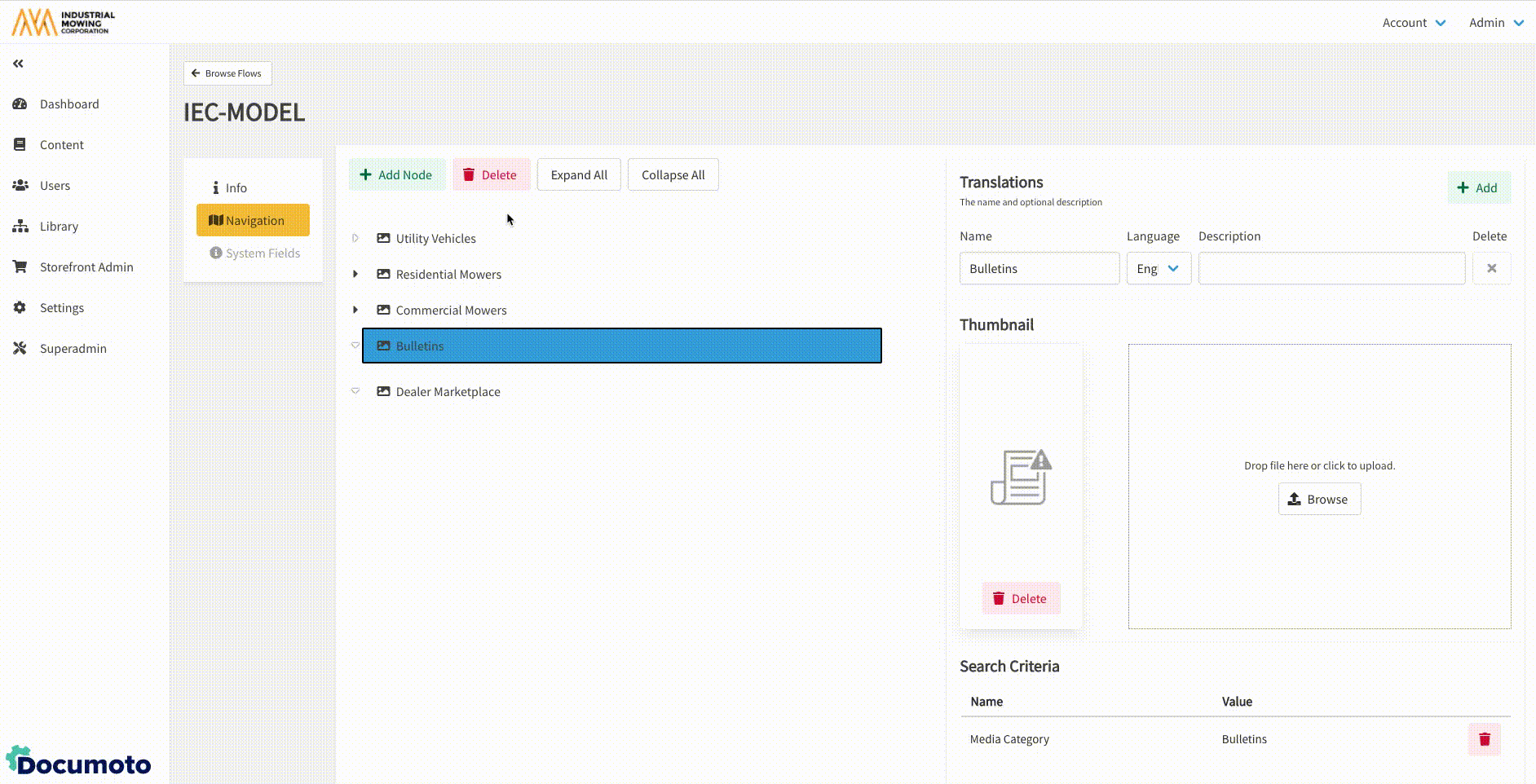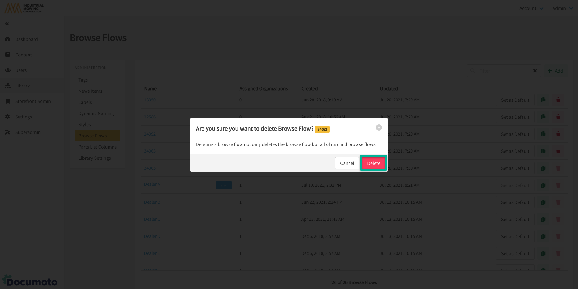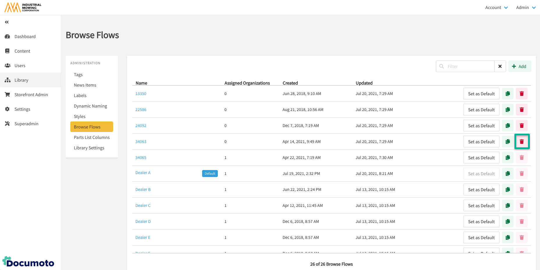 - Within Documoto Admin Center, go to Library Admin > Browse Flows.