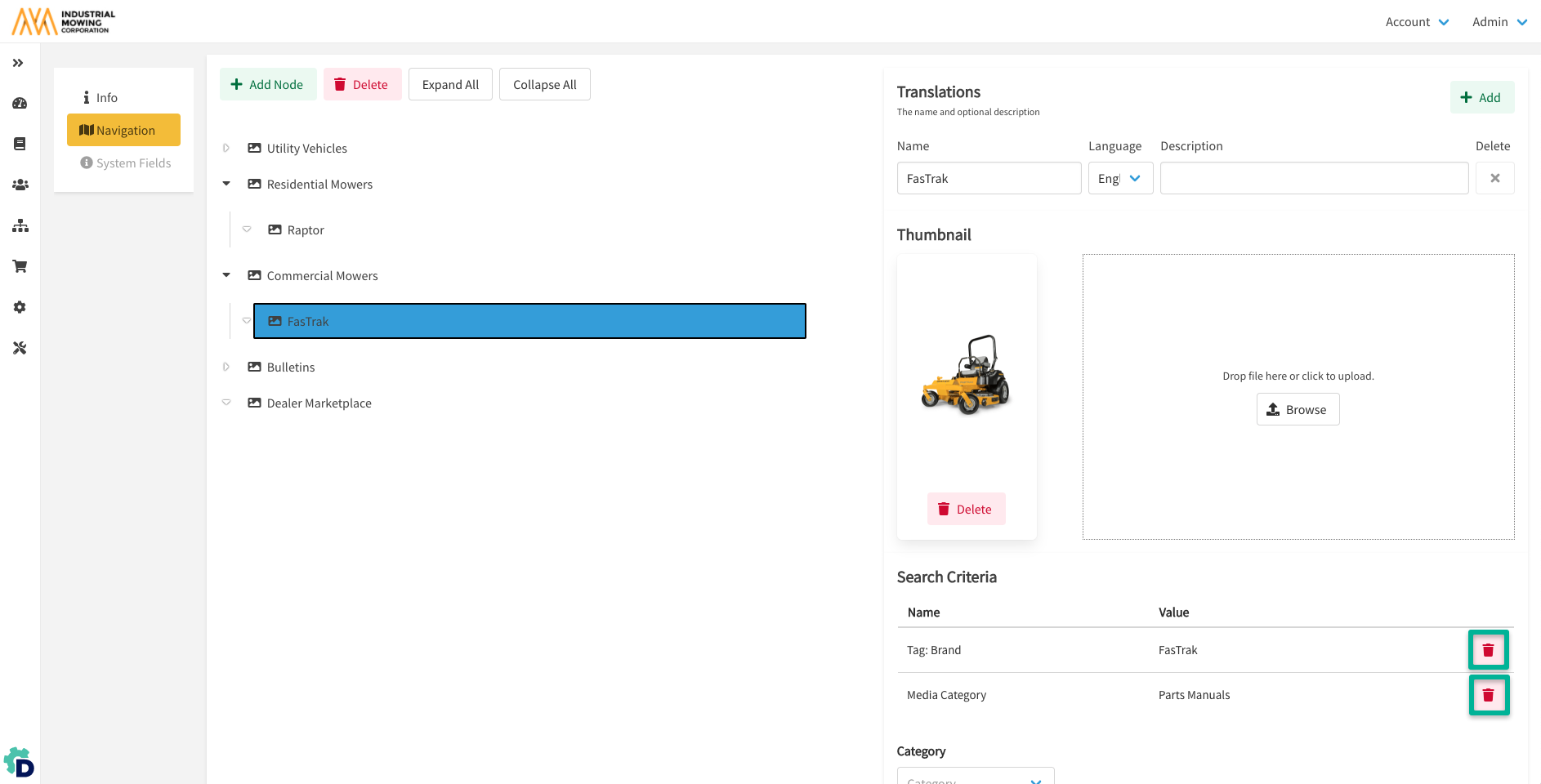 - Click on the Browse Flow containing the browse flow tile, or node", with applied Search Criteria you wish to delete.