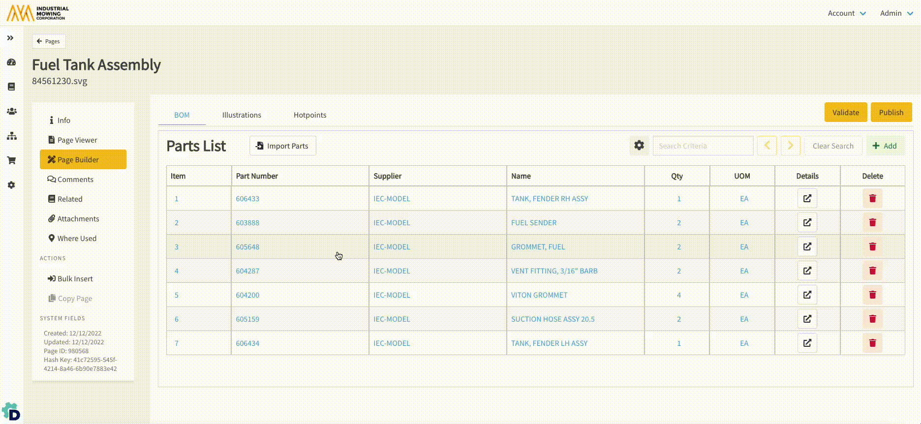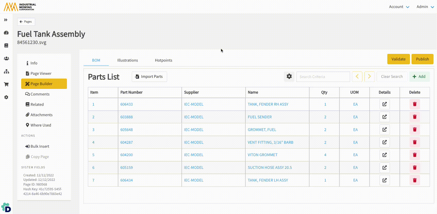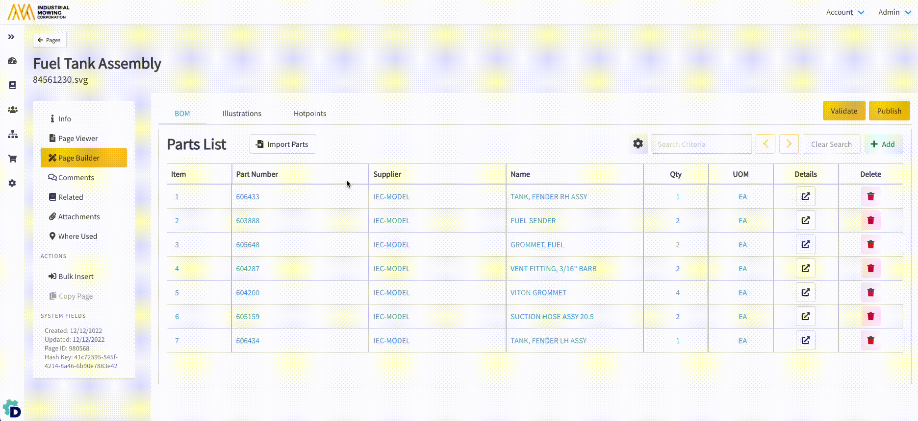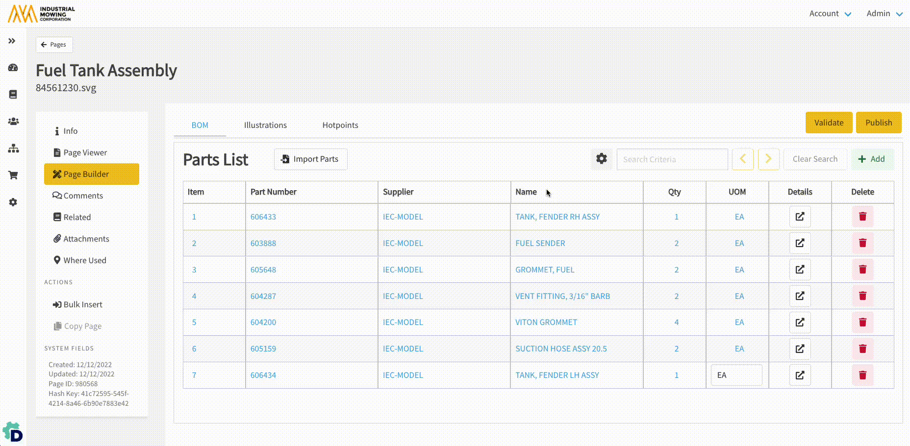 This article describes the steps to edit an existing Bill of Materials (BOM) for an interactive Parts Page in Documoto.