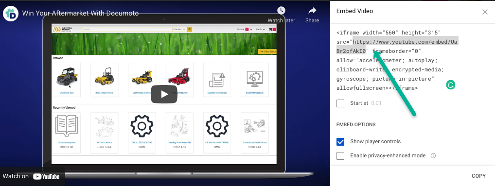 - Copy the source link from the embed data, and go back to your Documoto tab.