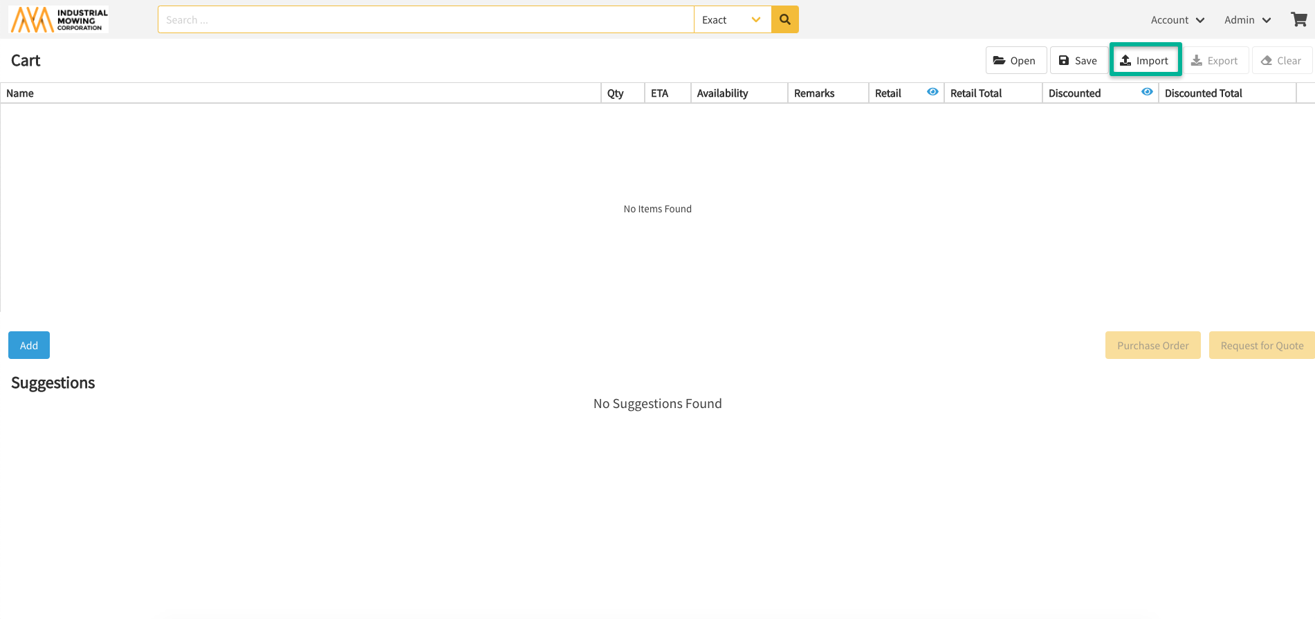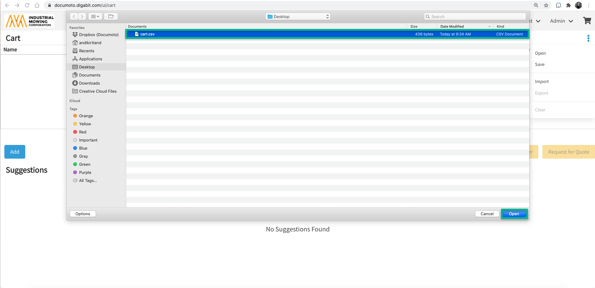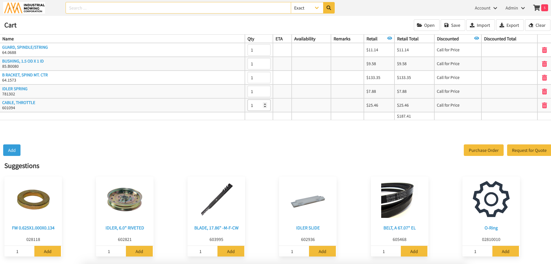- Within the Documoto Library, add parts to the Shopping Cart.