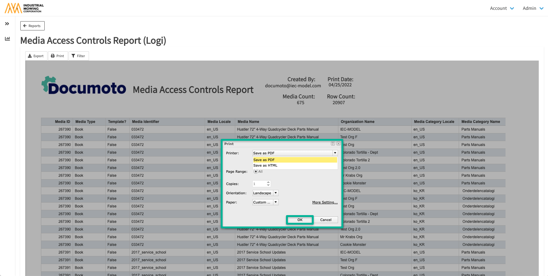 - Select desired export format (PDF, HTML, Text, or XLSX)