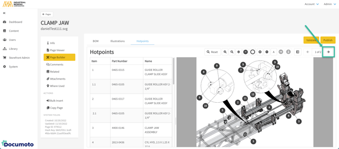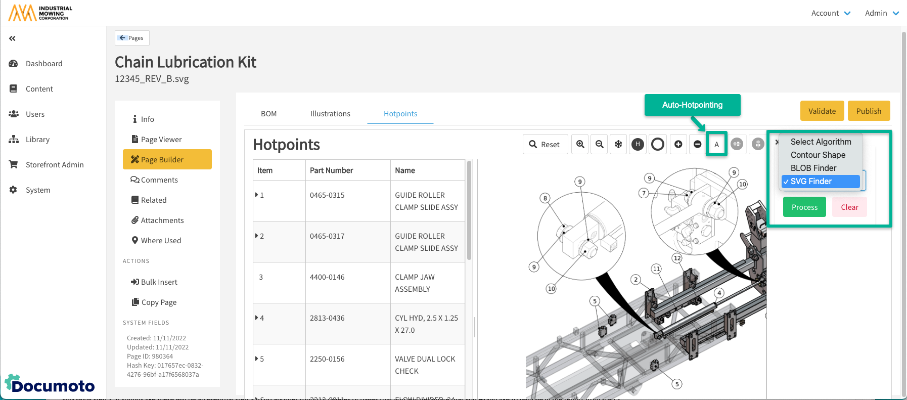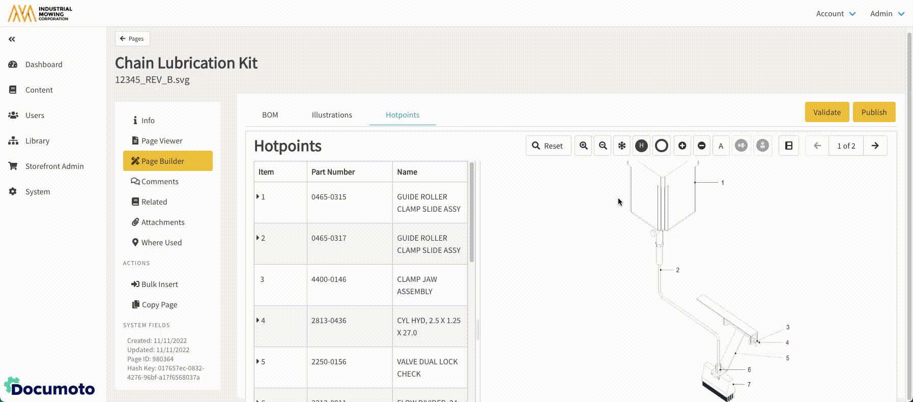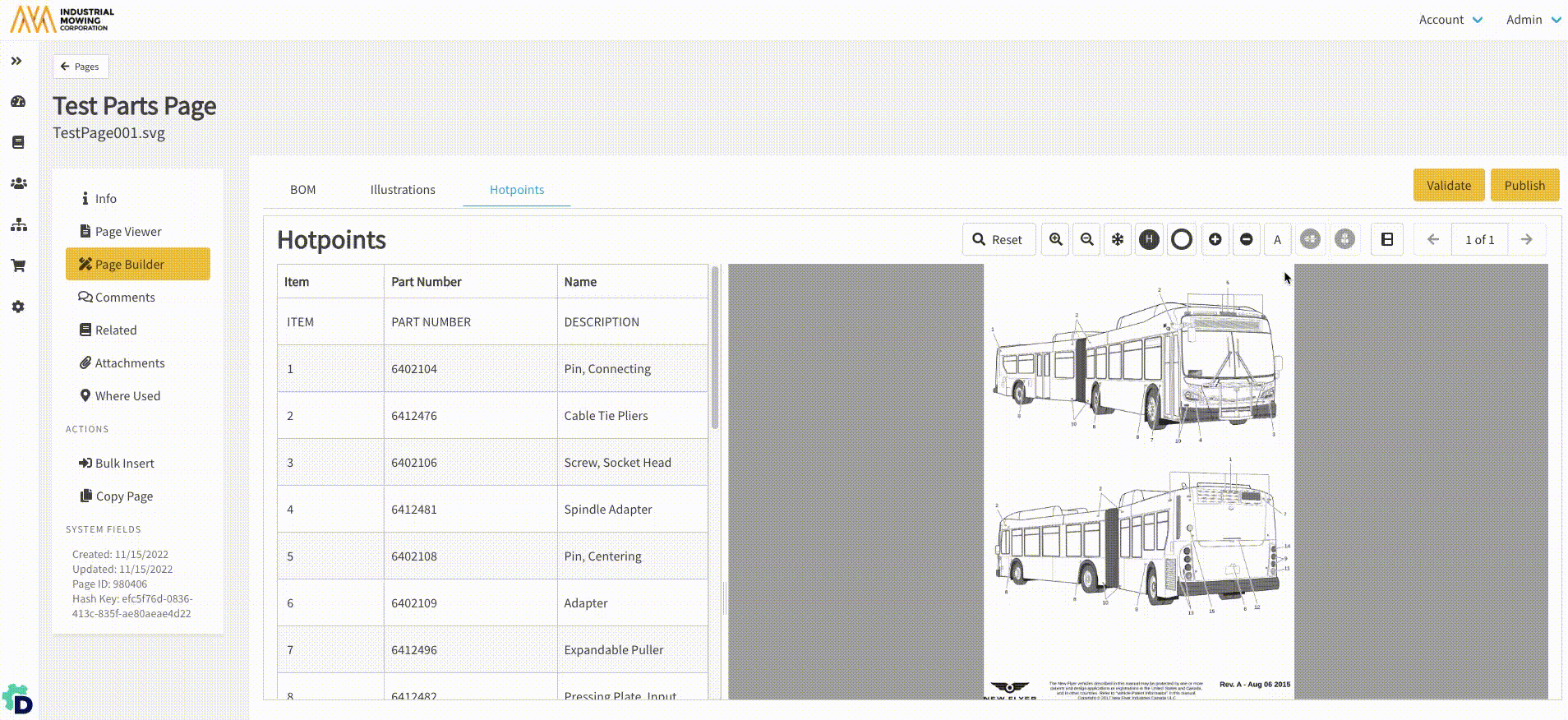 Hotpoints create the bi-directional interactivity between the BOM (Bill of Materials) and the Illustration on a Page.