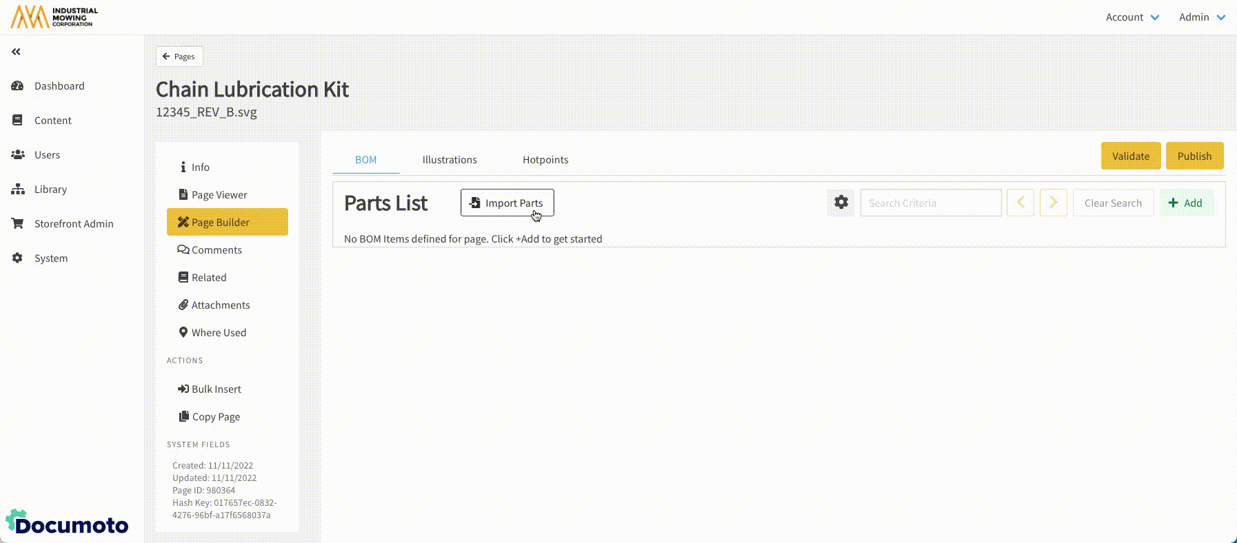This article describes the steps to import a new Bill of Materials (BOM) for an interactive Page in Documoto.