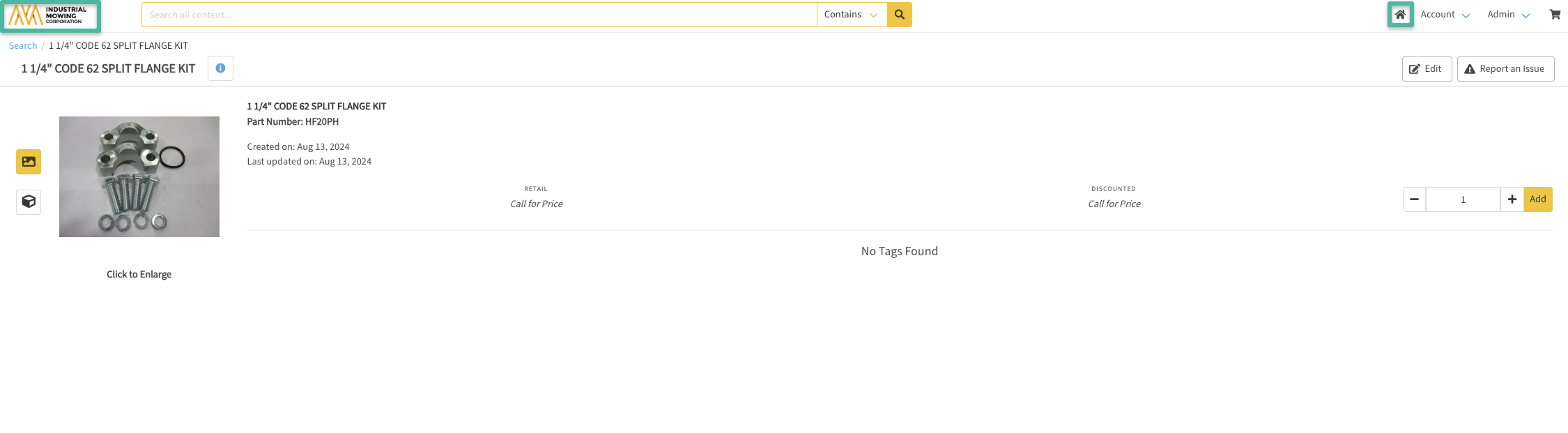 While navigating through Documoto to find content, an end user can return to the Home Page by selecting the Company Logo located in the top left-hand side of the screen. The logo, search bar and other options will always be visible no matter what content is being view in Documoto.