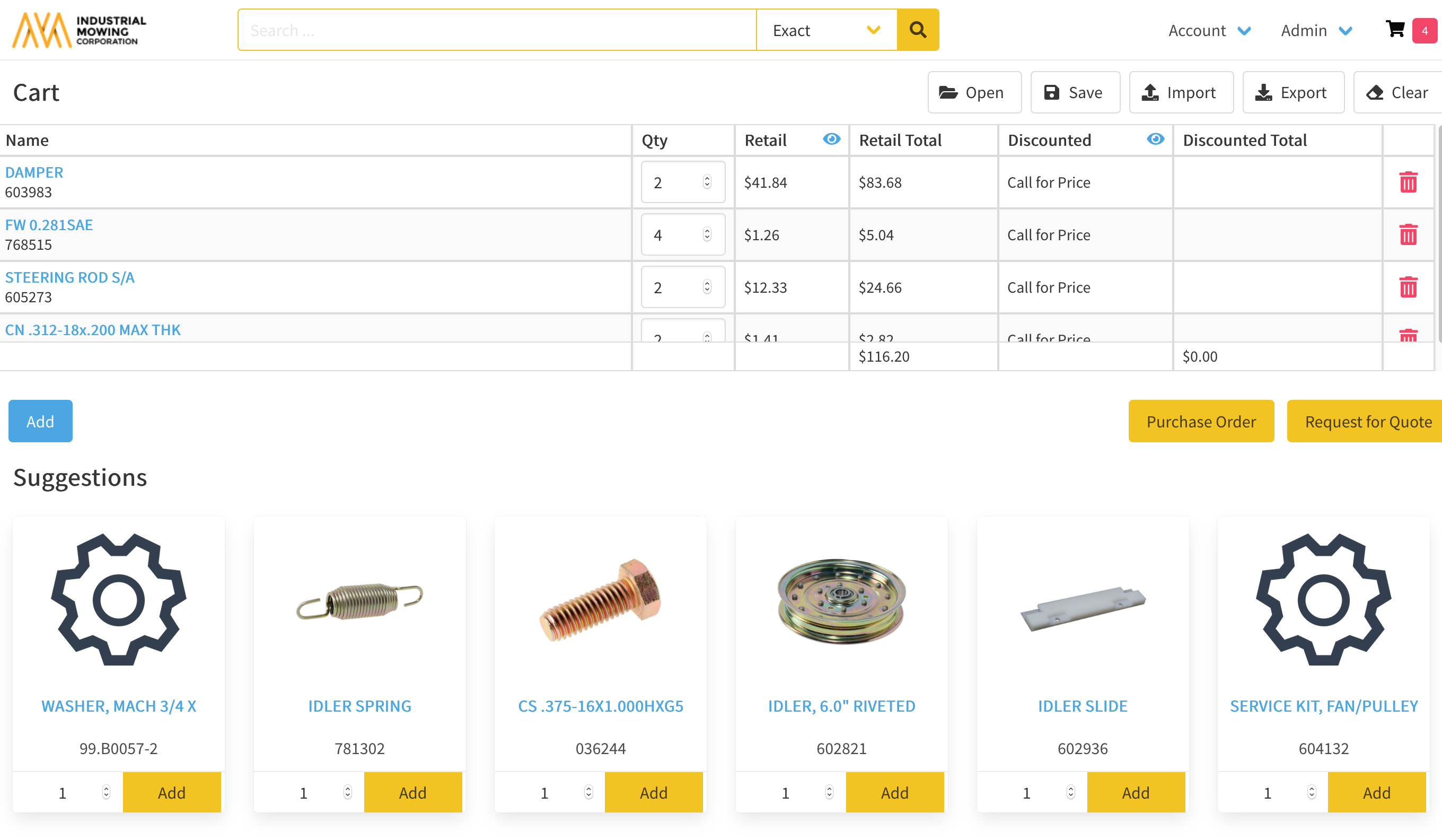 When dealers, customers, or field technicians need to place a parts order, they have the option to save their shopping cart to come back to it later. Saved carts are extremely useful for users who order the same parts often or for users that need to return to their cart at a later time to place an order. This article describes how to save a cart, as well as how to retrieve a previously saved cart.