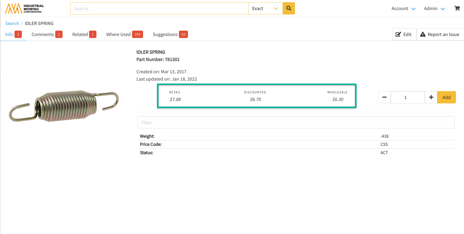 Within the Library, up to three (3) prices/tiers can be set for a part: