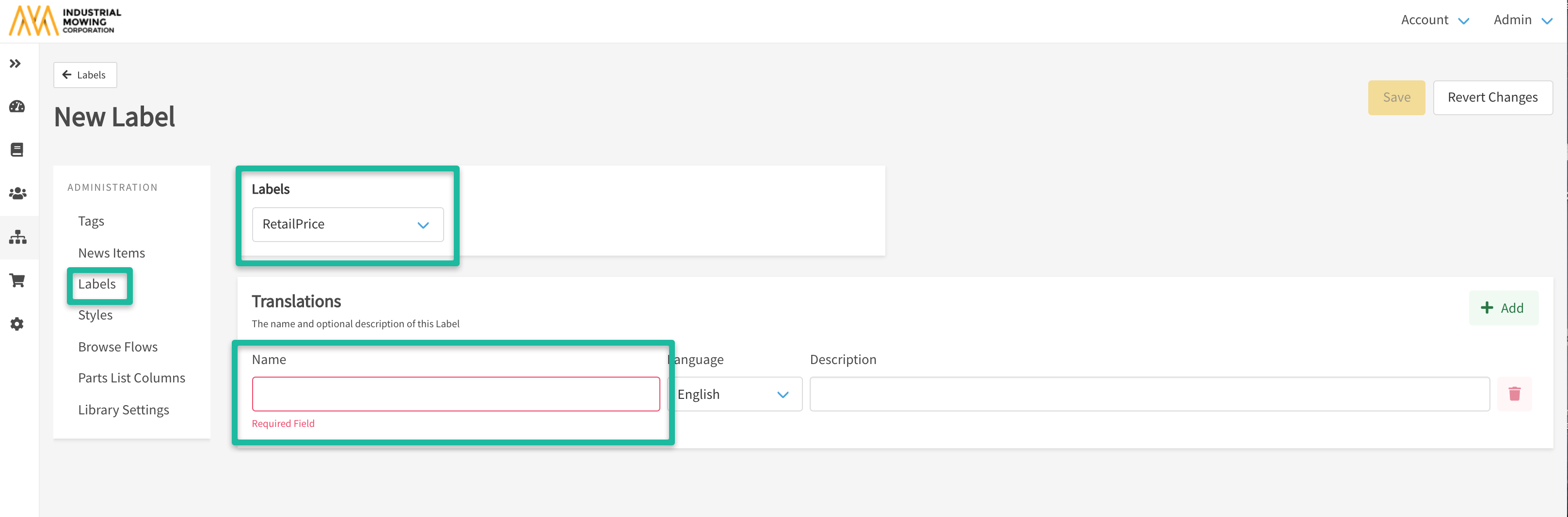 Administrators can also use Labels (screenshot below) to modify the names of the system pricing tiers (Retail, Discounted, Wholesale) to mirror the naming conventions within your pricing structure; common examples include: List, Dealer, etc.