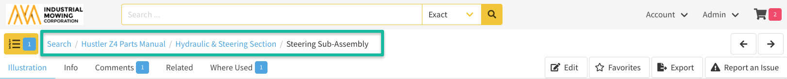 - Where Used (Part or Page viewer only): all locations where the part or page is used in the library