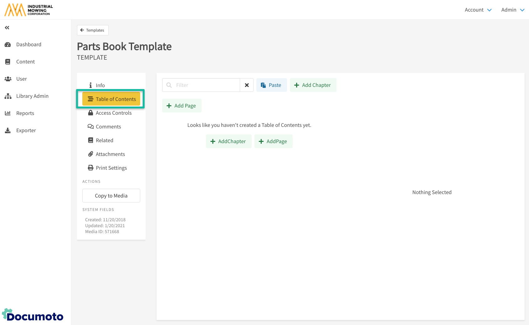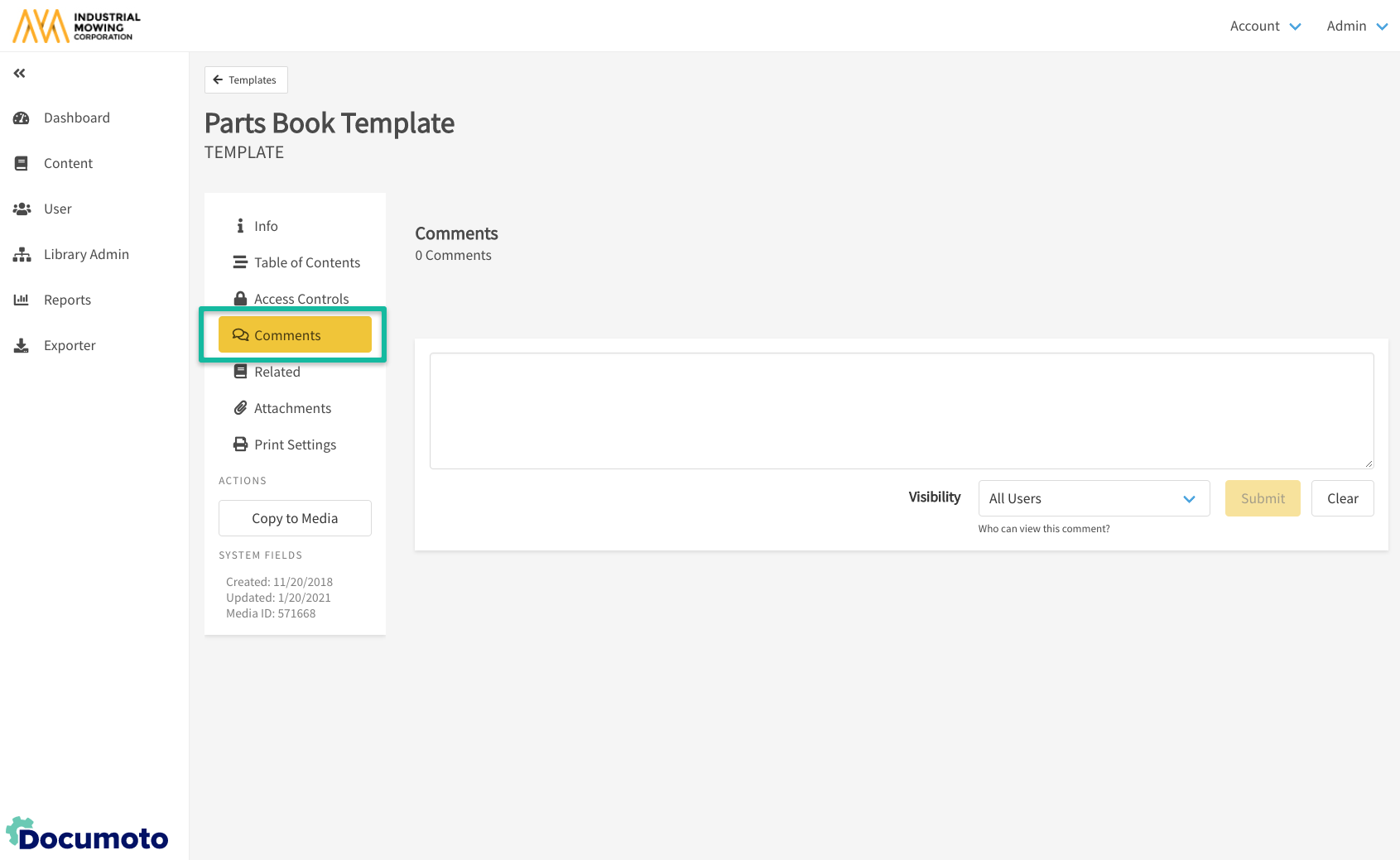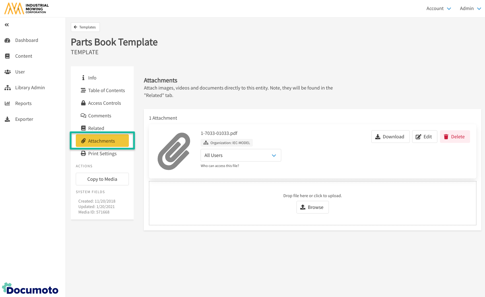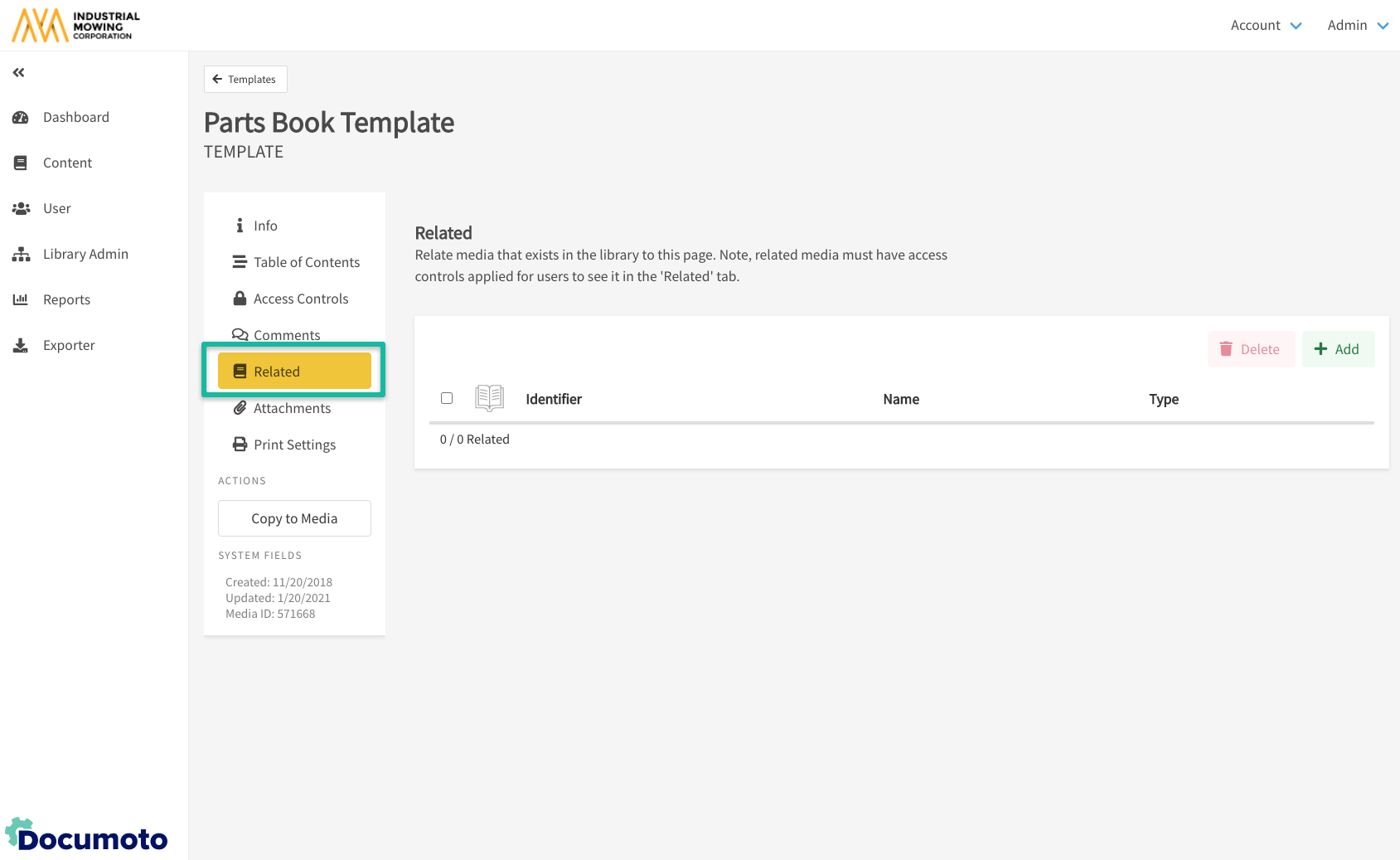 - Within Documoto, go to Admin Center > Content > Templates > select a desired template.